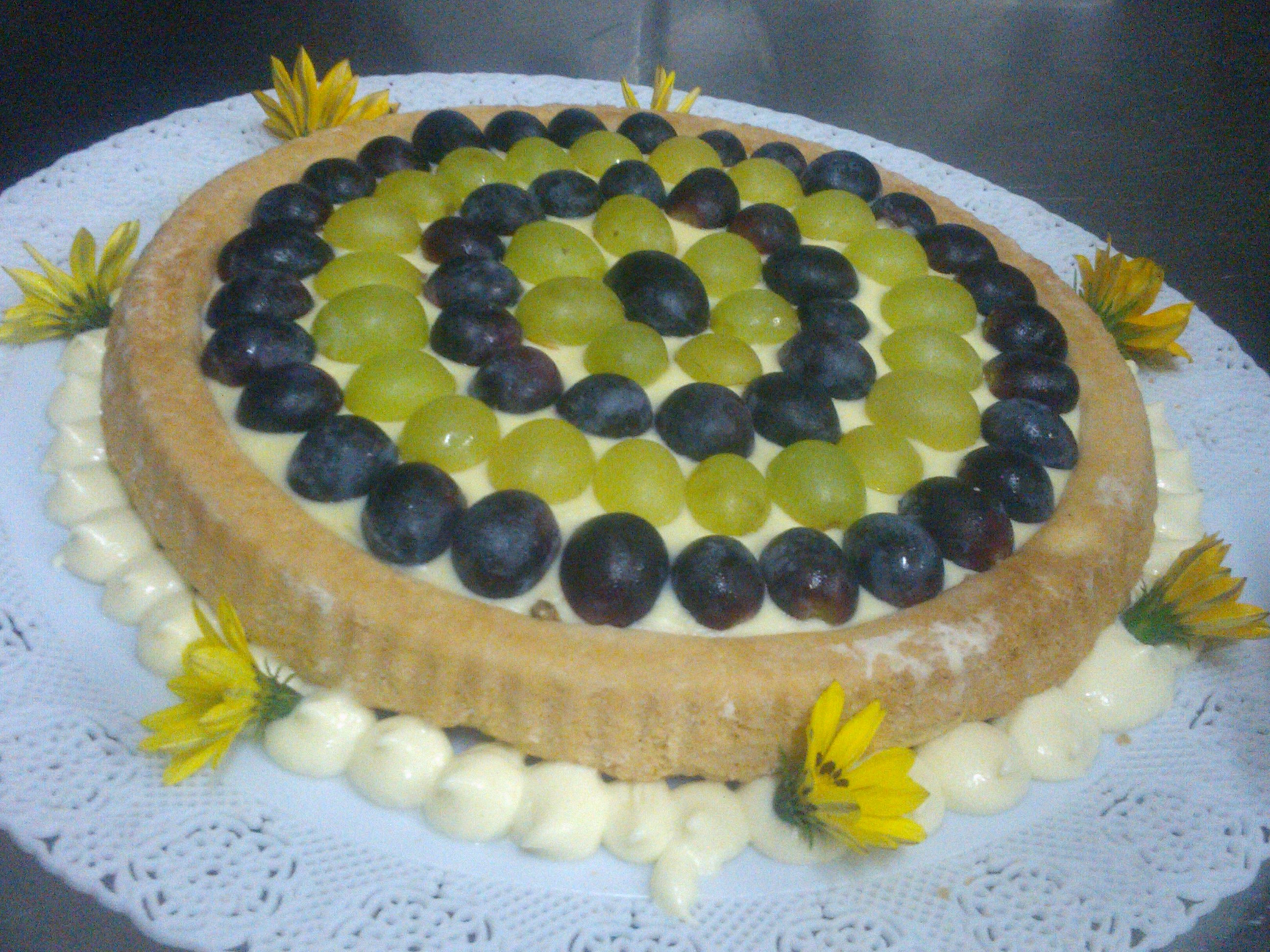 Distribuite sul disco di pasta frolla la crema chantilly e decorate con l’uva sia bianca che nera precedentemente tagliata a metà e priva dei semi. Con l’iuto di un pennello da cucina spennellate la superficie con la gelatina per lucidare la frutta e ponete la torta in frigorifero due ore prima di servirla.