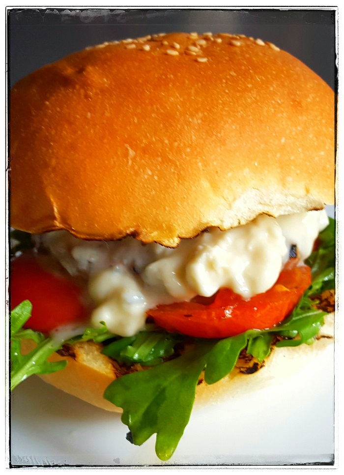Si parte dalla preparazione più lunga, ovvero i pomodori confit. Incidere a croce i pomodori sulla parte inferiore e immergerli in acqua bollente per 45 secondi circa. Raffreddarli immediatamente in acqua e ghiaccio per bloccarne la cottura. Dopodiché privarli della pelle. Successivamente tagliarli in 4 parti oppure a metà, a seconda della grandezza dei pomodori usati, eliminare i semi e l’acqua di vegetazione interna per ricavarne dei filetti. Posizionare i filetti in una teglia rivestita di carta forno, cospargerli di sale, zucchero, aglio, olio evo, timo fresco oppure origano secco e cuocerli in forno a 60° C per 4 ore. La carne da usare per la composizione dell’hamburger deve avere la giusta quantità di grasso, altrimenti non resta succulenta. I tagli di manzo più adatti da utilizzare sono la spalla, le costolette, la punta di petto. Quindi salare l’hamburger di manzo in superficie (in modo tale che in cottura si creerà una piacevole crosticina) e cuocerlo su una bistecchiera di ghisa, rovente, 3 minuti per lato, nel frattempo tagliare il panino a metà e tostarlo nella parte interna posizionandolo sulla bistecchiera. Amalgamare mascarpone, gorgonzola e miele e comporre il panino.