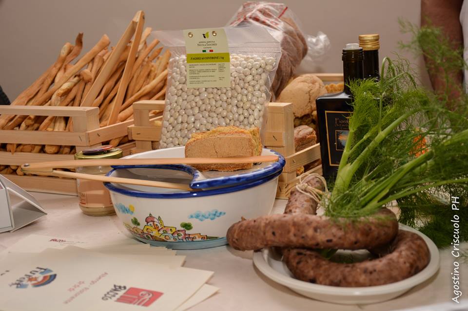 Protagonisti nei piatti ingredienti semplici ma che si faranno ricordare, in linea con la filosofia Slow Food, come la colatura, il farro, le verdure di stagione, il pomodoro fiascone, il pomodorino del piennolo, lo sfusato amalfitano, il finocchietto e i prodotti ittici che rientrano nella cosiddetta cucina “di pesce povero” come i totani, le alici e il tonno. Non sono mancate le degustazioni di prelibatezze dolciarie, di marmellate, di confetture, di latticini lavorati in diretta, di salumi e della rinomata pizza di Tramonti.