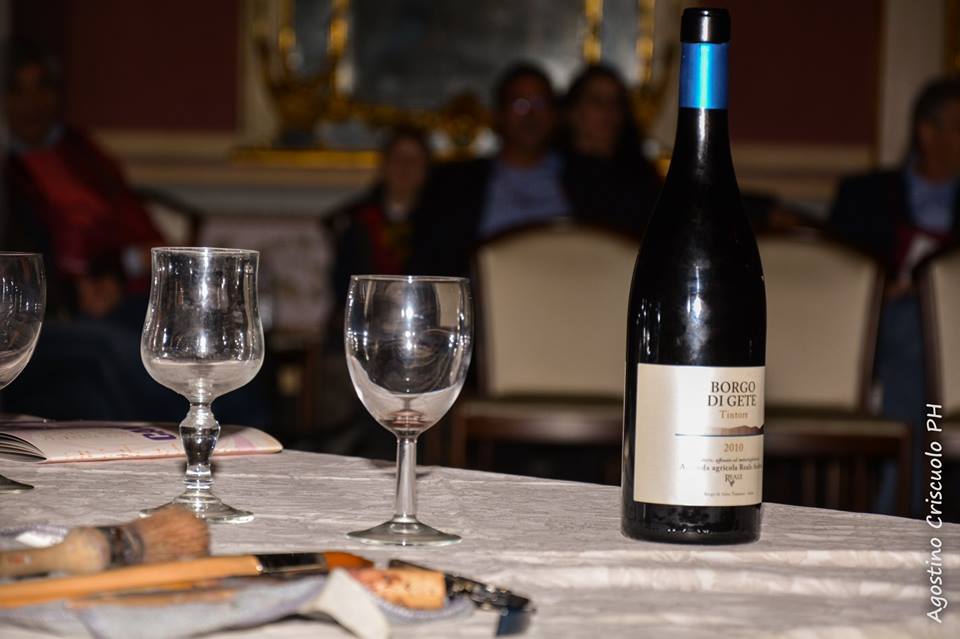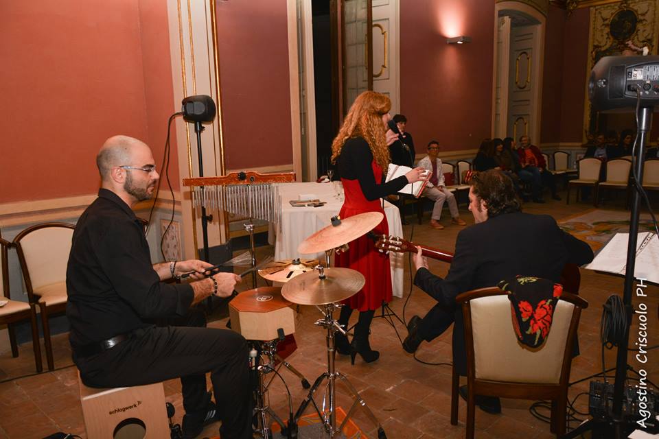 E a proposito di vini, il momento più esclusivo della serata si è avuto nel Salone degli affreschi alle ore 21:30, un momento estatico di coinvolgimento dei sensi attraverso i ritmi jazz, brasiliani e di tango del trio Isolacustica con percussione, chitarra classica e voce di Susanna Giordano e la performance “Per Amor Divino” dell’artista milanese Miky Degni. L’artista su carta d’Amalfi ha realizzato con vino tintore, vitigno autoctono a piede franco del territorio tramontino , una particolarissima opera intitolata “La Divina”, in omaggio alla Costiera Amalfitana.