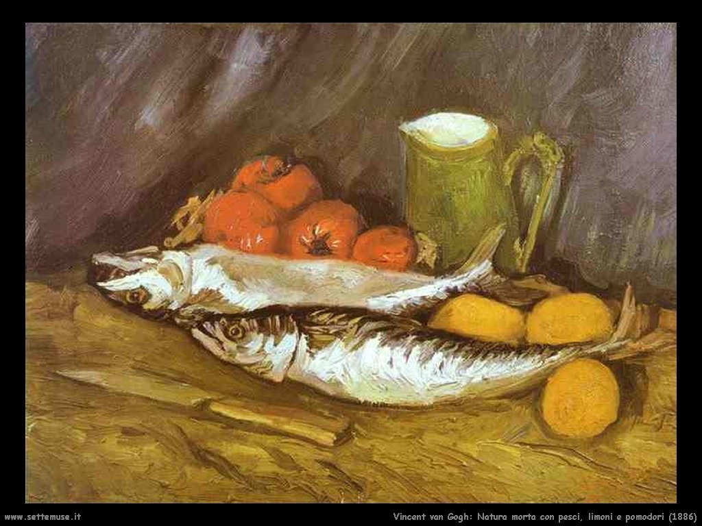 Sapori decisi nei paccheri fatti a mano e trafilati al bronzo con ragù di ricciola. Il richiamo con una natura morta di Vincent Van Gogh del 1886 è fortissimo.