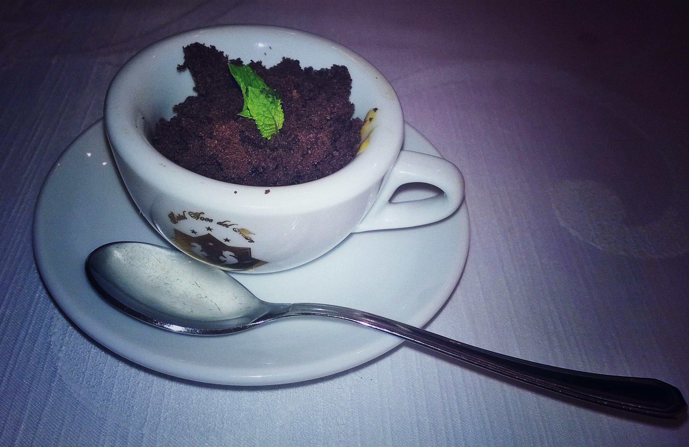 Simpaticissimo il pre-dessert racchiuso nella sua tazzina composto da spuma al caffè e spugna al cioccolato.