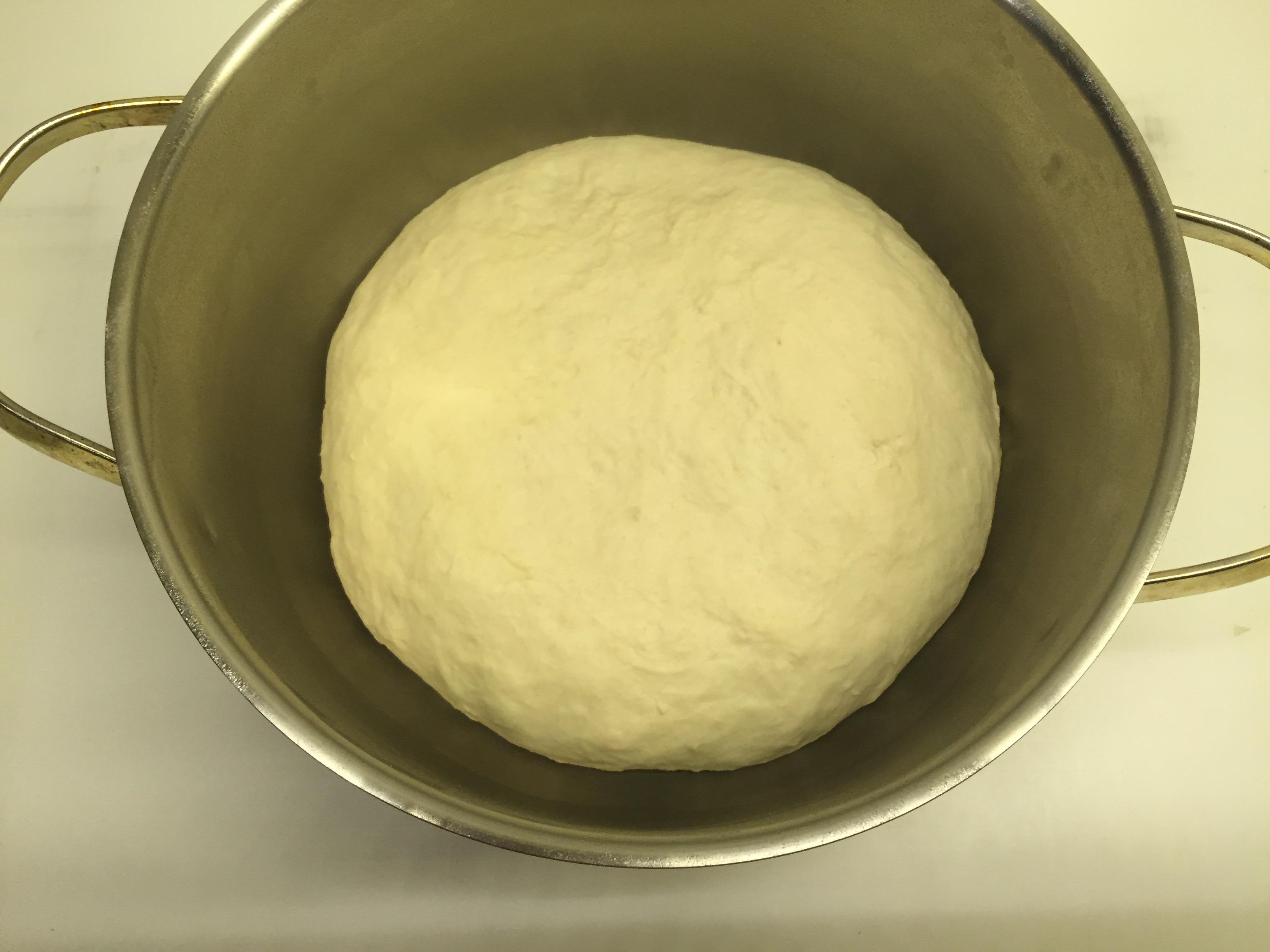 8 superati i tempi di riposo, dividete in due l’impasto e lasciatelo lievitare all’interno di una ciotola, o pentola come nel caso della foto, con un po’ di olio sul fondo che eviterà che si attacchi tutto. Dovranno passare almeno 12 ore, in ogni caso il vostro panetto dovrà essere 3 volte più grande.