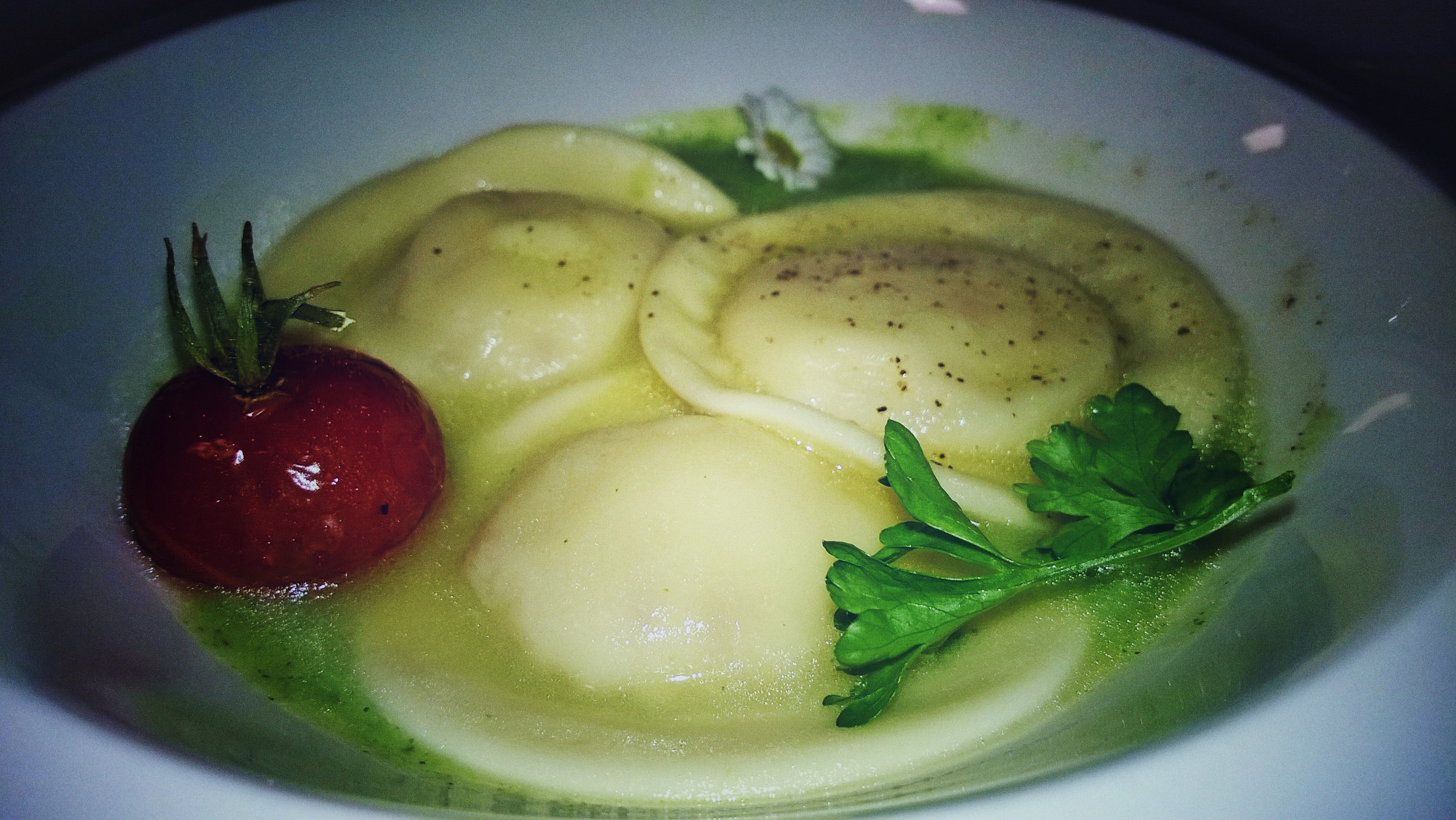 RAVIOLI DI RICOTTA E NOCI, PADELLATI CON COLATURA DI ALICI SU PASSATINA DI BROCCOLI di Gianpaolo Zoccola