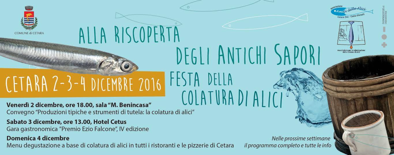 Si svolgerà il 3 dicembre la quinta edizione del Premio Gastronomico “Ezio Falcone” nell’ambito della tradizionale e rinomata “Festa della colatura di alici” di Cetara.