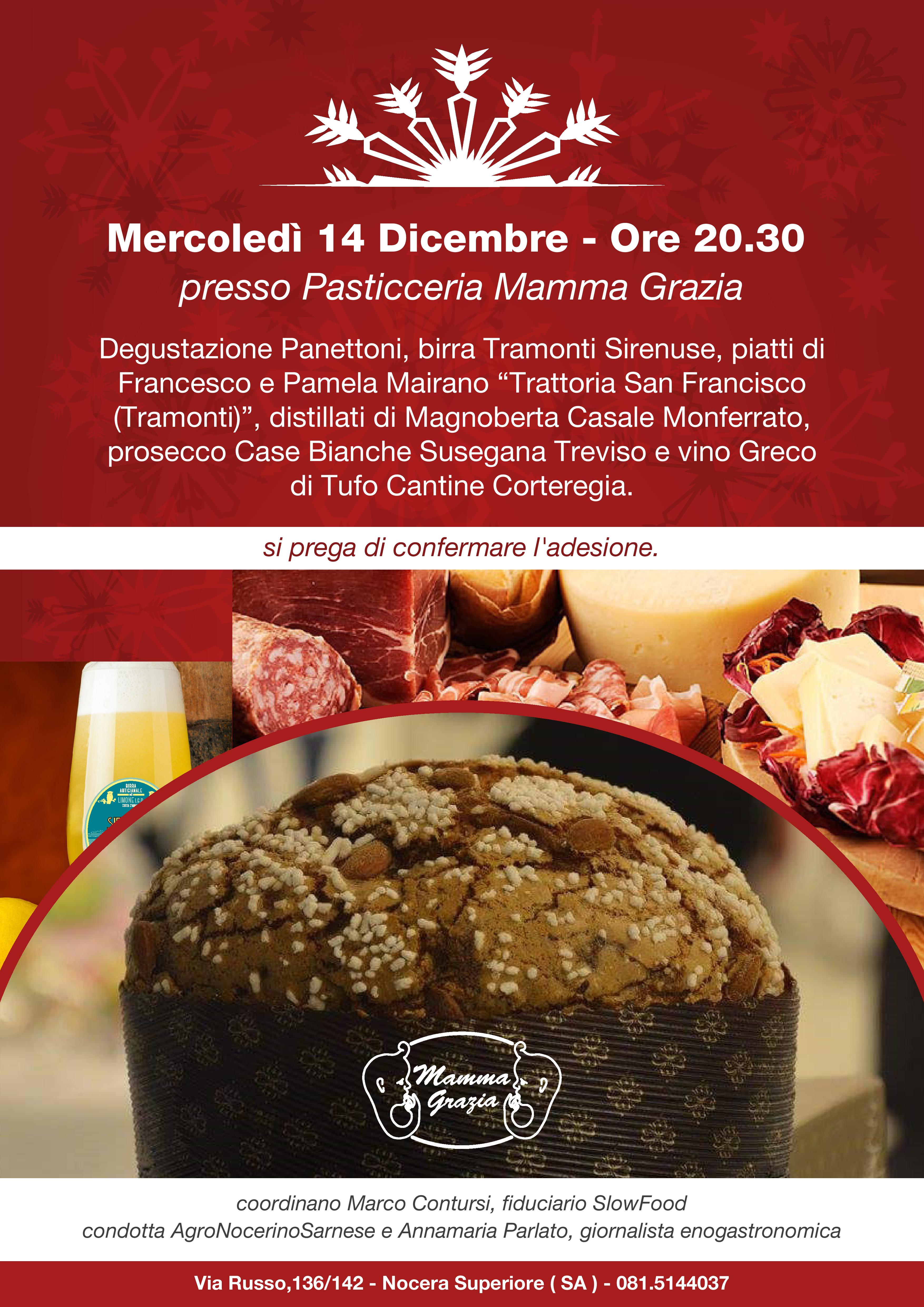 Per inaugurare le Festività natalizie all’insegna della dolcezza, la Pasticceria Mamma Grazia sarà lieta di invitare mercoledì 14 dicembre i propri clienti, i curiosi e gli amici alla consueta “Serata Panettone”, che da diversi anni è diventata un appuntamento imperdibile per i golosi e gli amanti del cibo di qualità.