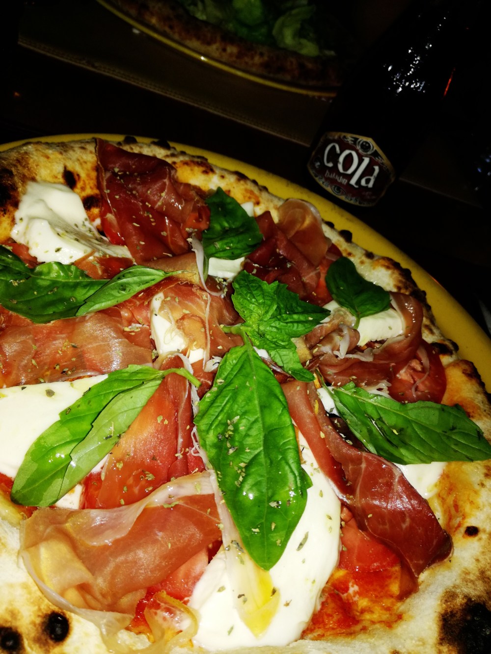 e “Capri” con fiordilatte a fette in uscita, pomodori di Sorrento, basilico, olio EVO a crudo, origano di montagna e sempre su personale richiesta prosciutto crudo San Daniele.
