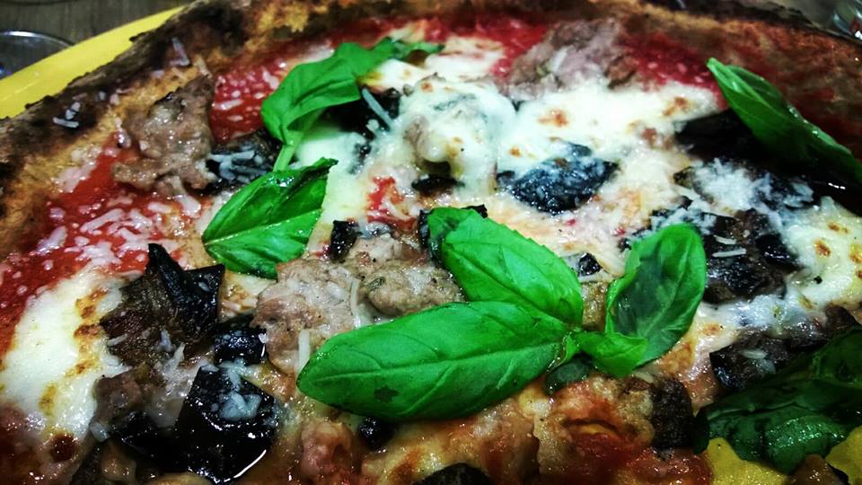 Ancora la “Cacciatora” a base di melenzane, salsiccia di suino campano, porcini, parmigiano grattugiato 24mesi.