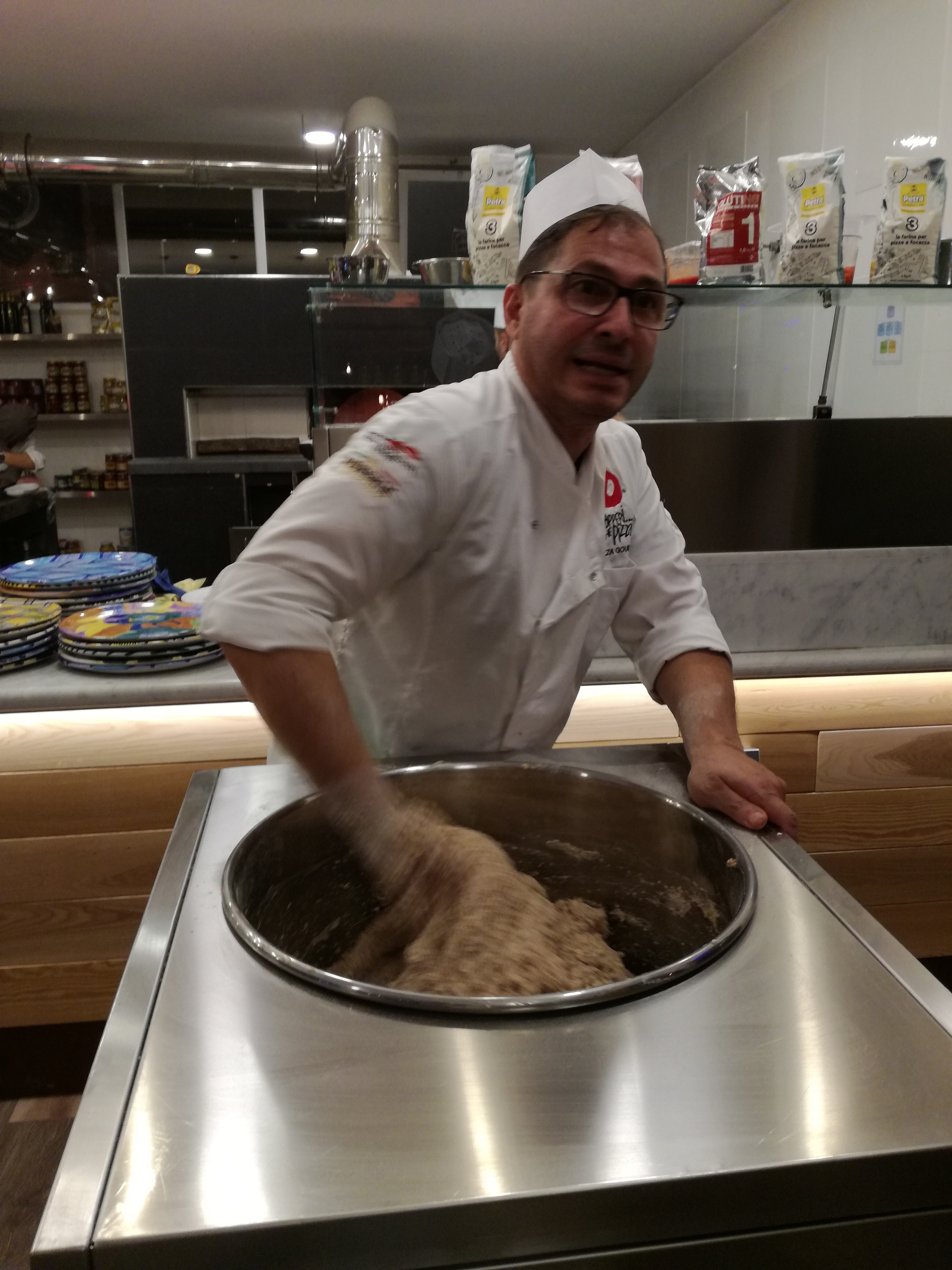 Insomma che dire tutto squisito, tutto meraviglioso, menù ricchissimo di proposte riguardanti anche i fritti, carta delle birre, dei vini e dei distillati ben assortita, curata dal bier sommelier Gilberto Acciaio. Impasti ben idratati, farine semi-integrali e integrali selezionatissime del Molino Quaglia, prodotti eccellenti, cornicione pronunciato al punto giusto, la tradizione che si rinnova con proposte sempre originali ed allettanti. Cosa desiderare di più? Perfino il capo pizzaiolo Cosimo Bonavita, pizzaiolo gourmet di terzo livello, allievo del conosciutissimo maestro Luigi Acciaio, che tiene corsi sulla pizza in tutta Italia, mi ha spiegato la tecnica di lavorazione del suo impasto a mano di farina integrale Petra 9, ottenuto grazie all’ausilio di un’impastatrice A.T. di ultima generazione, che non va a sostituire il lavoro manuale dell’artigiano, ma solo a migliorarlo.