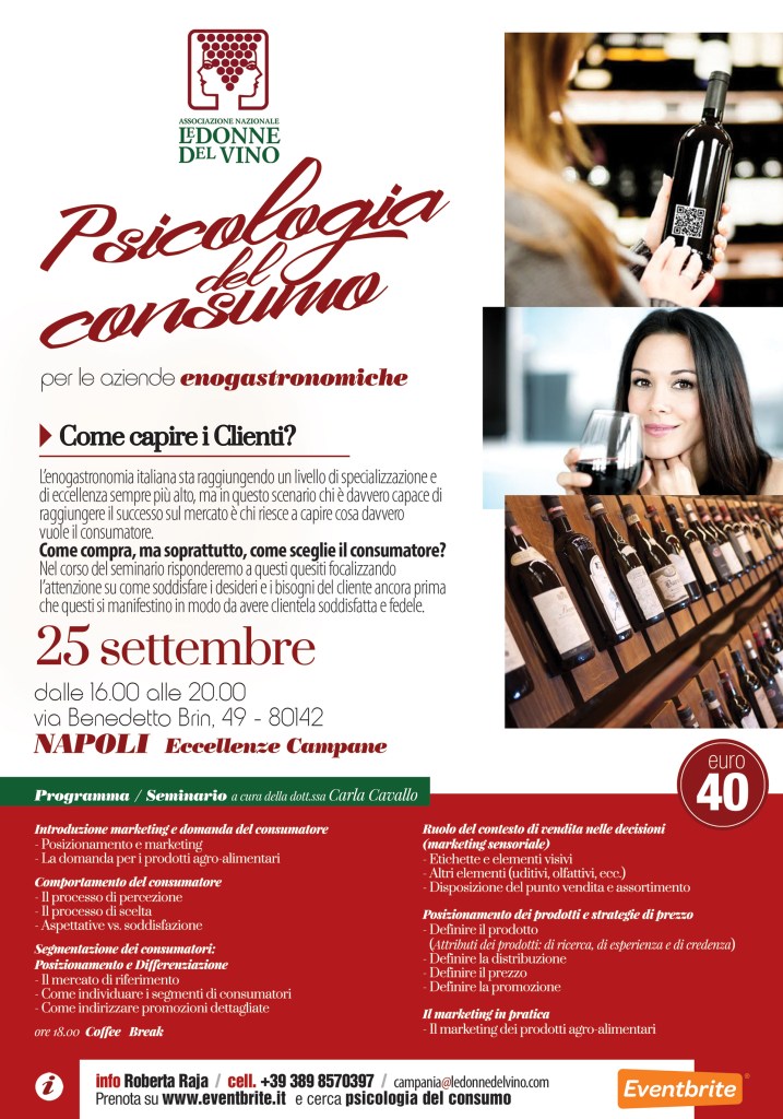 alla voce ‘Psicologia del Consumo’ Per info: campania@ledonnedelvino.com, FB: Le Donne del Vino della Campania, Instagram: Donne del Vino Campania @DDVCampania,