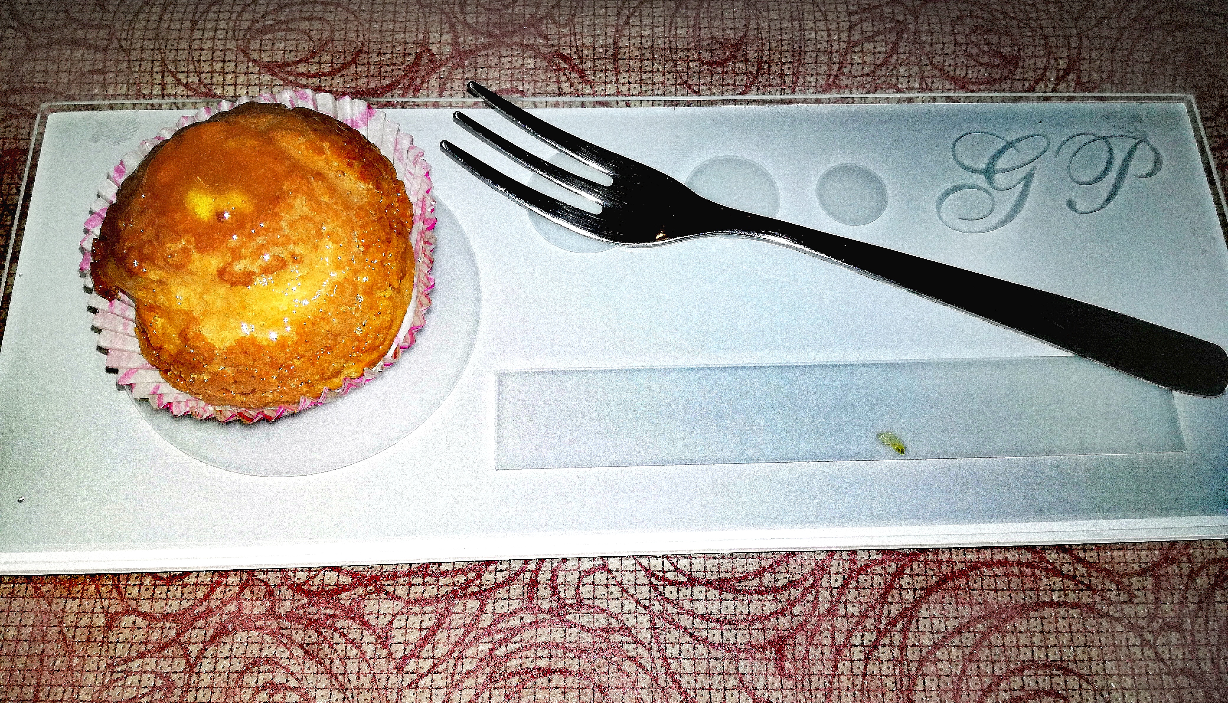 Proprio questa sensazione di benessere corporeo ha lasciato ulteriore spazio per un dessert, davvero particolare, opera del maestro pasticciere Giuseppe Palumbo dell’omonima pasticceria a Roccapiemonte. Giuseppe assieme alla moglie, si è specializzato da tempo nella realizzazione di dolci a base di confetture ottenute dai pomodori campani; il suo cavallo di battaglia, che lo ha fatto conoscere ed apprezzare dagli esperti di settore, è stata la “Zizzinella” con pomodoro San Marzano, Fiano, nocciole di Giffoni e ricotta di bufala, un piccole bignè soffice e croccante al tempo stesso, unico nel genere. Si è optato in un cambio di rotta per il Lucariello con confettura di pomodorino giallo della linea Gustarosso e delicata crema di ricotta, che ha letteralmente soddisfatto il palato e piacevolmente saziato.