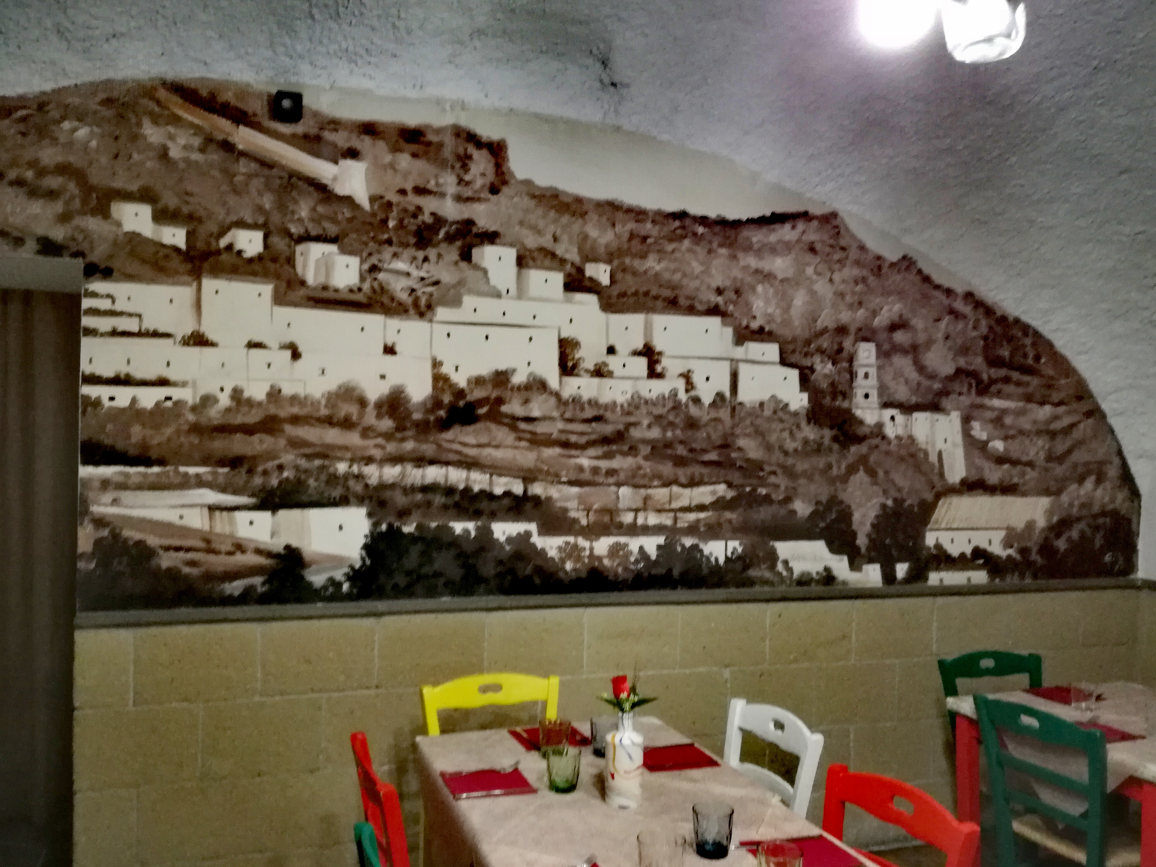 Angelo ha spiegato che Barbacià è il soprannome della sua famiglia (forse in dialetto significa “barbagianni”), e che il locale è stato da lui stesso abbellito con dipinti parietali e quadri che raffigurano scorci e paesaggi sarnesi: un tentativo ben riuscito per ancorare l’osteria al territorio.