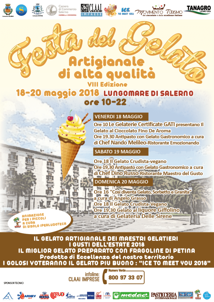 Torna dal 18 al 20 maggio prossimi, proprio per segnare l’inizio della stagione estiva, ideale per degustare coni e coppette all’aria aperta, la Festa del Gelato Artigianale di Alta Qualità di Salerno.