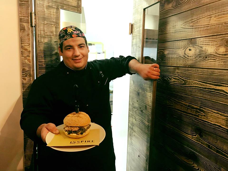 Le contaminazioni made in USA ci sono è inutile negarlo, ma bisogna pur ammettere che a volte in un panino il cheddar, ad esempio, ci sta da Dio, soprattutto in determinati contesti e se abbinato ad alcuni ingredienti, quanto il bacon: senza questi elementi il panino perderebbe di gusto. Inoltre il panino perfetto dovrebbe contenere una serie di accorgimenti tra cui: il pane o bun che deve risultare morbido, leggermente tostato e friabile senza una crosta troppo spessa e senza troppa mollica, alla giusta lievitazione, in grado di sostenere strati di verdure e condimenti senza rompersi; la carne macinata ovvero la protagonista della pietanza in questione, che non deve essere maneggiata troppo o schiacciata con la spatola sulla piastra, ma restare succulenta all’interno con le giuste percentuali di grasso non addizionato, formando una crosticina dorata. I panini dell’Inspire da questo punto di vista non hanno deluso mai le aspettative di nessuno!