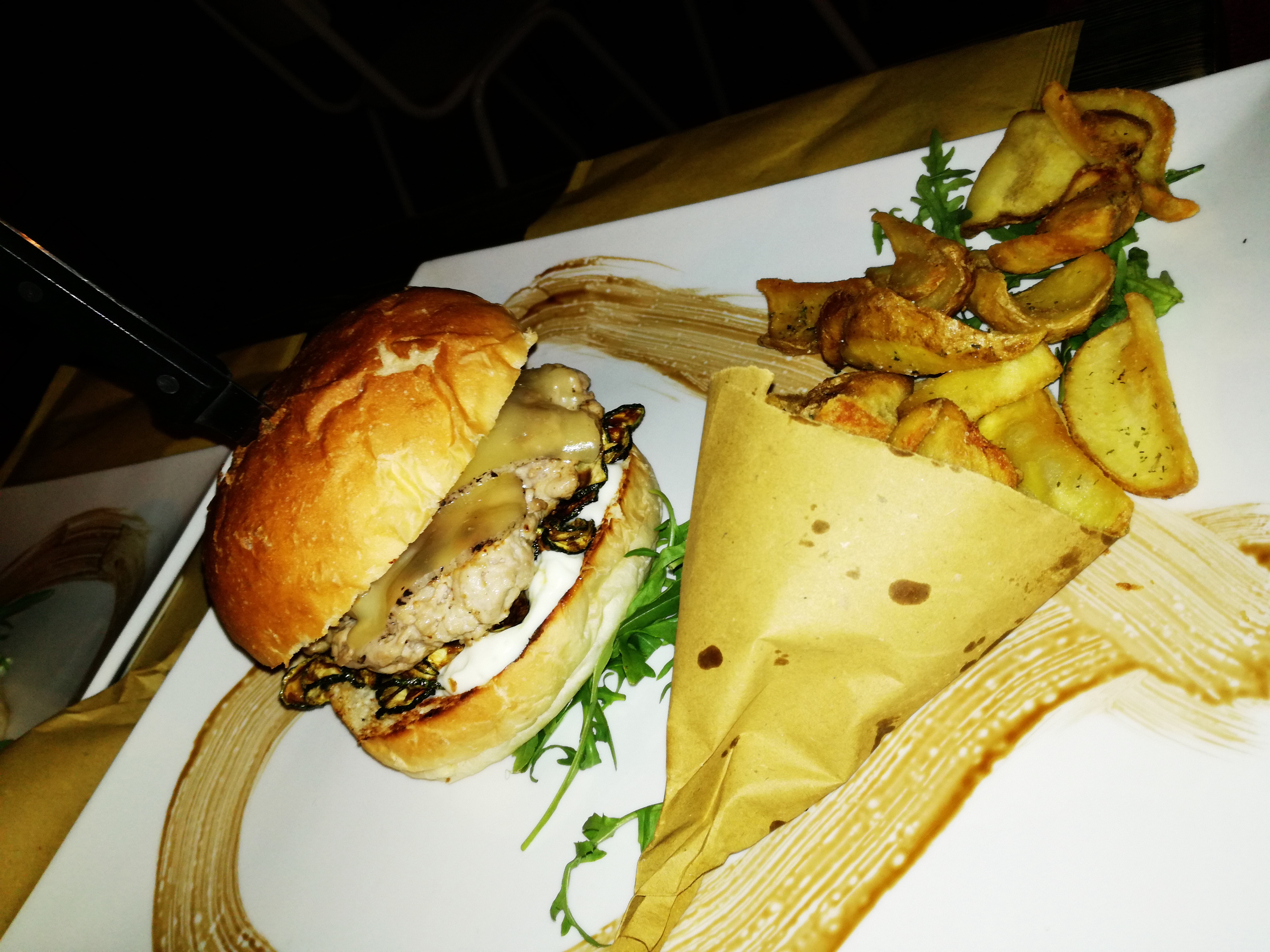 Il pub-hamburgeria è giovane quanto i suoi gestori, anche negli arredi giocosamente in stile urban-street, inaugurato nel settembre 2016, ha nel tempo acquisito forza e trasmesso fiducia ai suoi clienti che numerosi in qualsiasi giorno della settimana, vengono qui a mangiare le numerose prelibatezze che lo chef prepara. Gennaro con il quale ho spesso intavolato discorsi di storia locale, economia finanziaria e politica estera, è un grande esperto di prodotti d’eccellenza, vini e birre artigianali; Annalisa, solare, brillante, amante degli animali, lo è altrettanto per quanto riguarda la conduzione della sala, anzi delle sale visto che ci sono due piani e una settantina di coperti.