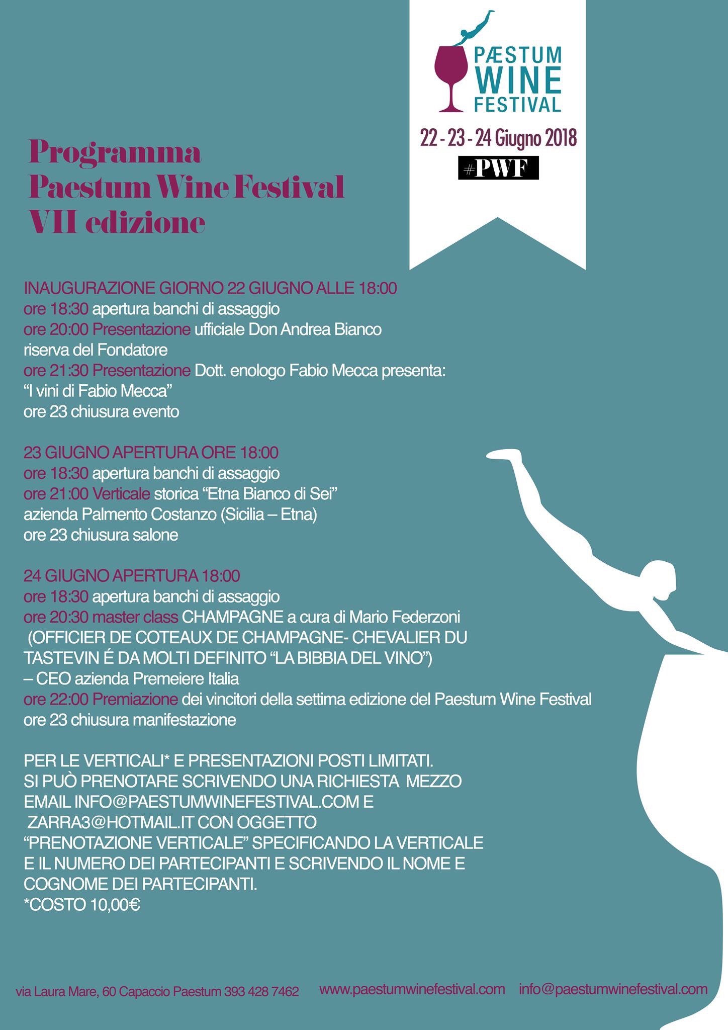 Gusto, aromi raffinati, atmosfere delicate ed il profumo di una tradizione di eccellenza che è il simbolo stesso di una produzione invidiata in ogni angolo della terra. Sua maestà il vino è l’assoluto protagonista della VII Edizione di “Paestum Wine Festival”, l’attesa manifestazione di esposizione delle eccellenze vinicole organizzata da Angelo Zarra. Appuntamento nei giorni 22, 23 e 24 giugno, negli spazi attrezzati dell’Enoteca Paradise, in via Laura Mare, a Capaccio Paestum. Qui produttori, studiosi, intenditori e curiosi si sono dati appuntamento per una tre giorni intensa, che punta ad esaltare le produzioni di eccellenza coniugate con la tradizione del gusto. Gli stand a disposizione degli espositori sono allestiti nell’area del pergolato, con zone coperte per le verticali. Spazi con varietà di esposizioni ed offerte, dai produttori di vino ai birrifici e fino alle produzioni di vodka e distillati. Importante appuntamento anche per la valutazione delle produzioni, con giurie di esperti e giurie dei consumatori e con i dettagli per partecipazione al concorso pubblicati sul sito www.paestumwinefestival.com. Un autentico festival del gusto e del buon bere, aperto al pubblico nei tre giorni dell’appuntamento dalle ore 18 alle ore 23. Nei tre giorni del “Paestum Wine Festival” sono previsti momenti di riflessione e di presentazione di alcune eccellenze nelle produzioni vinicole italiane, illustrate da esperti e produttori, tutte programmate nelle tre serate dell’appuntamento presso l’Enoteca Paradise di Paestum.