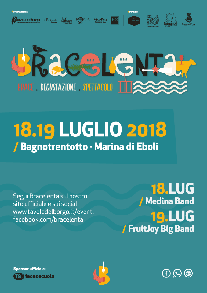 Una passeggiata gastronomica in riva al mare, dove la cucina sarà a vista sulle grandi braci allestite per l’occasione. Quattro postazioni con altrettante proposte gastronomiche tra mare e terra: dai primi piatti, alle carni, fino allo street food, senza dimenticare l’opzione vegetariana e l’angolo dolce. Bracelenta sarà una vera e propria festa di sapori che ha anche il retrogusto della tradizione, traendo spunto dall’antica consuetudine ebolitana della scampagnata a chiusura del raccolto estivo, di cui conserva lo spirito di allegria e di convivialità.