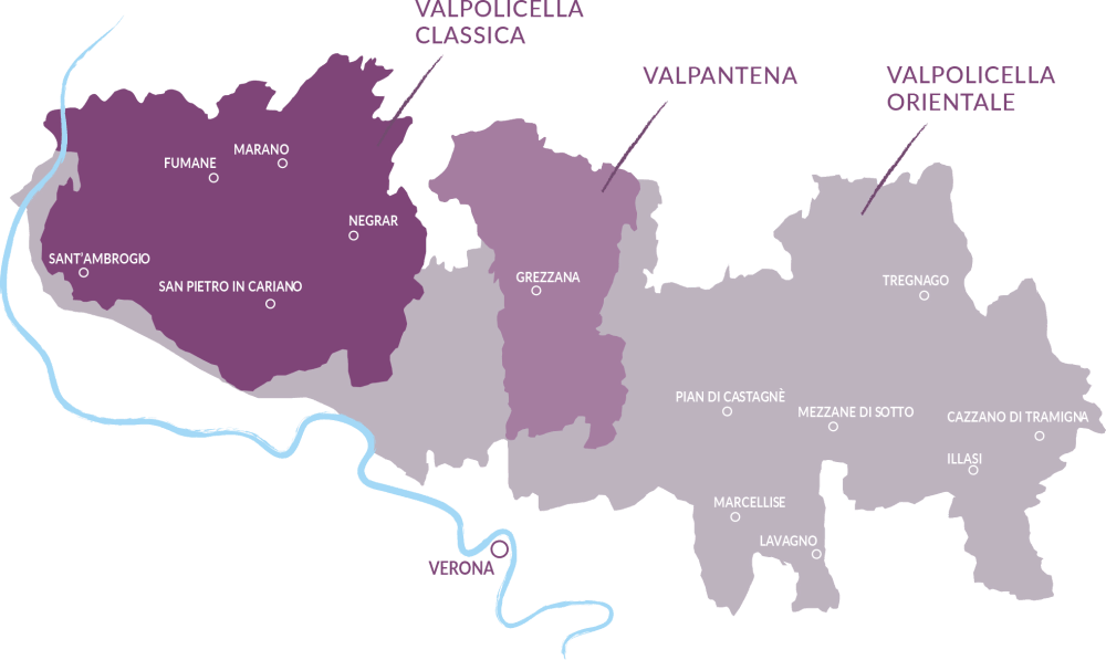 Valpolicella classico: l’uso della specificazione “classico” ai vini prodotti nella zona originaria più antica e comprende i 5 comuni di Sant’Ambrogio di Valpolicella, Fumane, San Pietro in Cariano, Marano e Negrar.