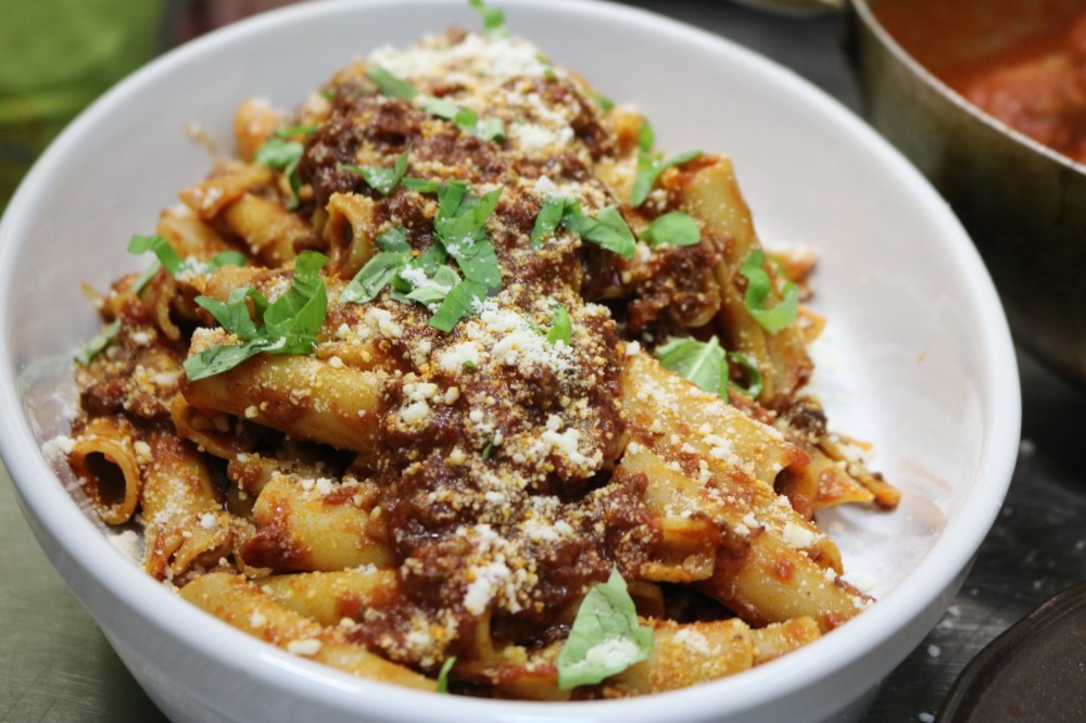 Il sugo ottenuto con la cottura nella classica pentola di coccio e con l’utilizzo di vari tagli di mucca, perciò un animale adulto le cui carni risultano particolarmente gustose alle lente e basse cotture, ma con l’inserimento anche di minori quantitativi di suino campano è andato a condire tutto il menù preparato per l’occasione.