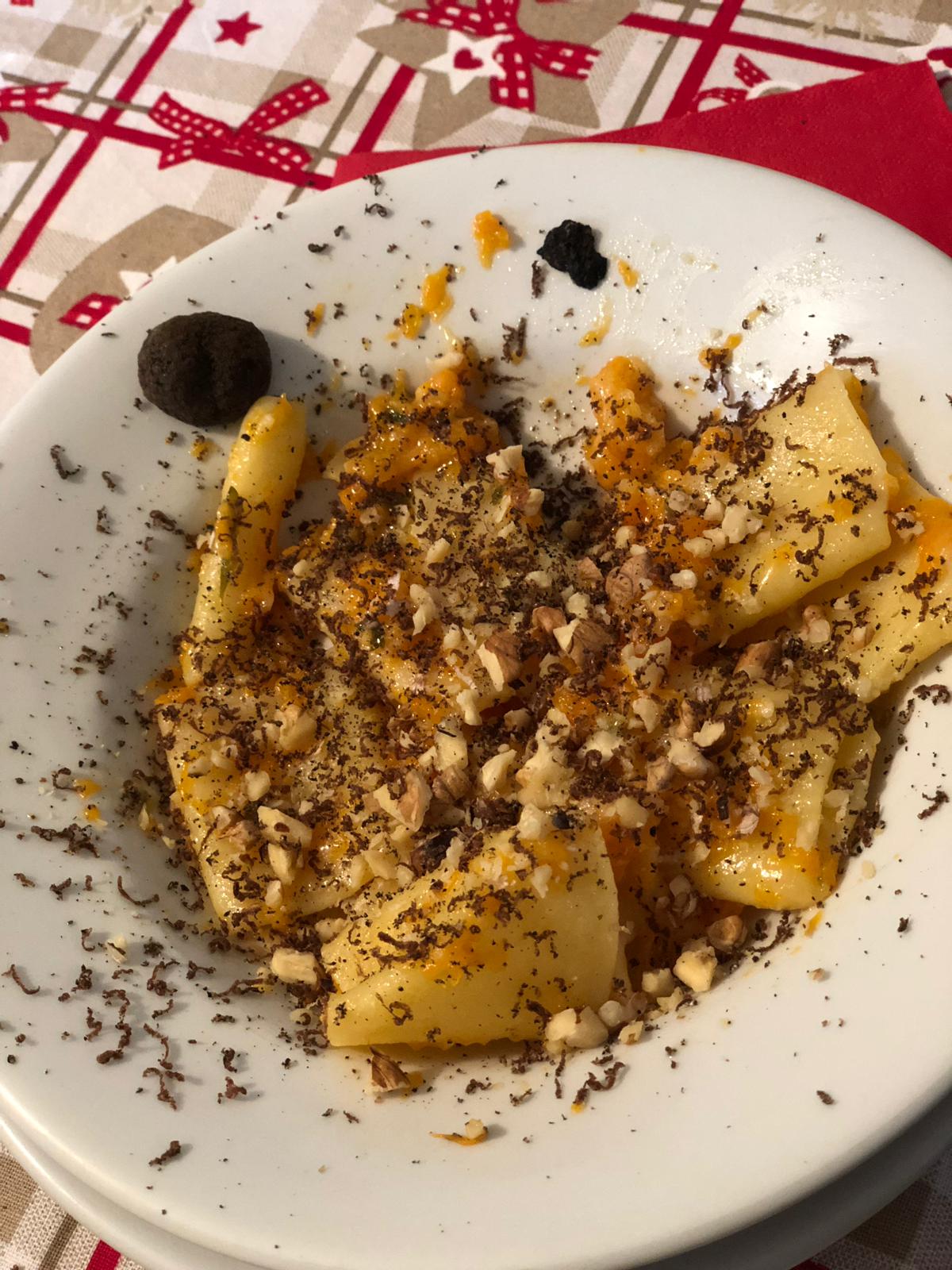 La manifestazione è stata il pretesto per far degustare i piatti del territorio come i paccheri con zucca, nocciole, noci e tartufo, il “culurz mbuttinato” con polpetta e ragù e il gelato alle castagne.