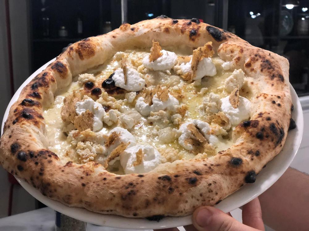 «Abitiamo alle falde del Vesuvio – spiega Giuseppe – quindi a nostra disposizione c’è un terreno argilloso dove si sviluppano prodotti di altissima qualità come il Piennolo, la Papacella, il Friariello o la Scarola. Tutto questo per me è importante, come la ricerca del prodotto di qualità o particolare. Ho la fortuna di essere un pizzaiolo dell’Alleanza Slow Food, per cui posso interagire con una rete di piccoli produttori che prestano molta attenzione a ciò che producono. Così come l’impasto va preparato in una certa maniera e con farine di altissima qualità, anche il topping rende una pizza eccellente, quindi ricerco sempre la versione migliore di un dato prodotto.»
