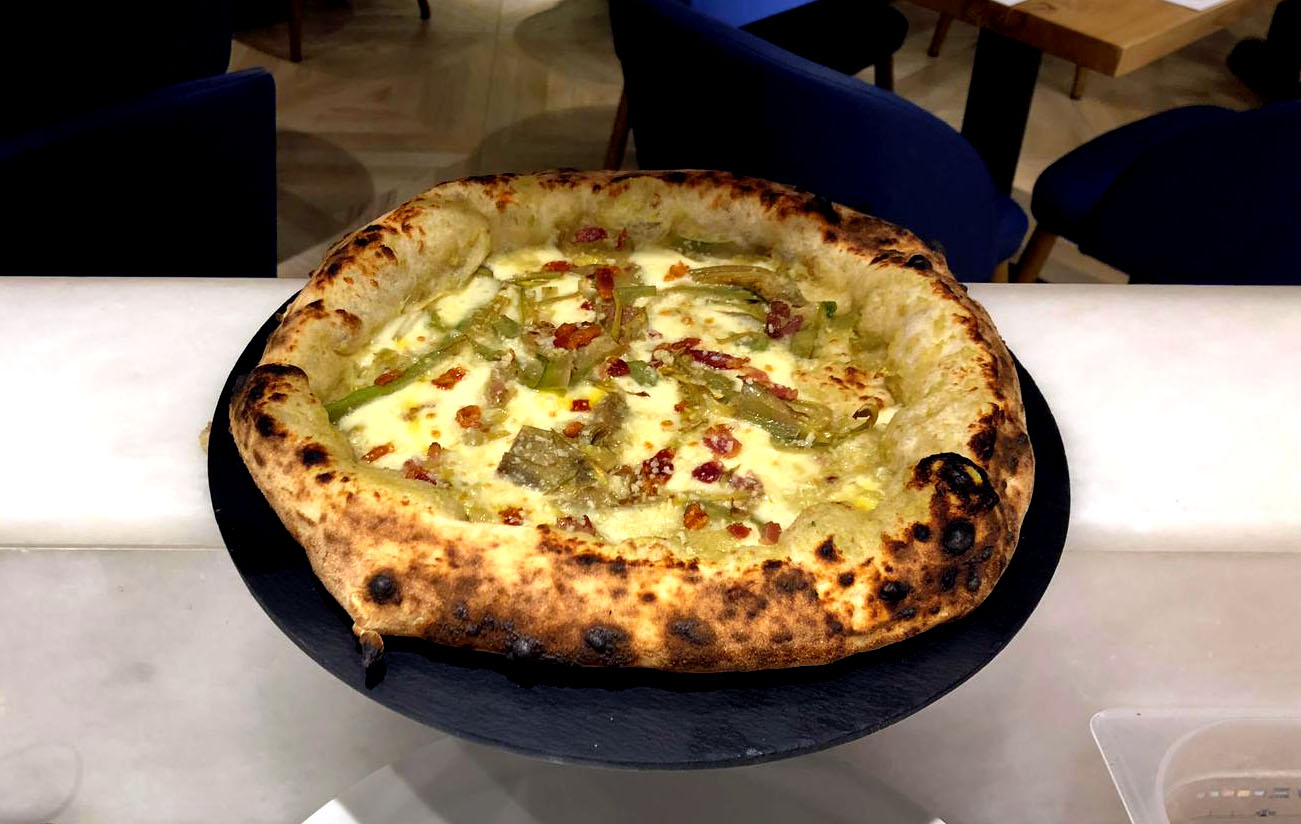 «Abitiamo alle falde del Vesuvio – spiega Giuseppe – quindi a nostra disposizione c’è un terreno argilloso dove si sviluppano prodotti di altissima qualità come il Piennolo, la Papacella, il Friariello o la Scarola. Tutto questo per me è importante, come la ricerca del prodotto di qualità o particolare. Ho la fortuna di essere un pizzaiolo dell’Alleanza Slow Food, per cui posso interagire con una rete di piccoli produttori che prestano molta attenzione a ciò che producono. Così come l’impasto va preparato in una certa maniera e con farine di altissima qualità, anche il topping rende una pizza eccellente, quindi ricerco sempre la versione migliore di un dato prodotto.»