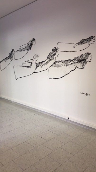 Il 2 marzo il maestro Antonio Petti, disegnatore e scenografo napoletano, salernitano d’adozione, noto per aver realizzato, fra l’altro, il Monumento a Pinocchio, una scultura in bronzo e un mosaico in pietre colorate, collocato nel Parco Lungoirno di Salerno, ha realizzato la terza opera su parete. La sua arte evocativa di un mondo magico, irriverente e ironico è tutta incentrata sul disegno, i suoi personaggi sono fortemente introspettivi nel loro rincorrersi e danzare in maniera leggiadra.