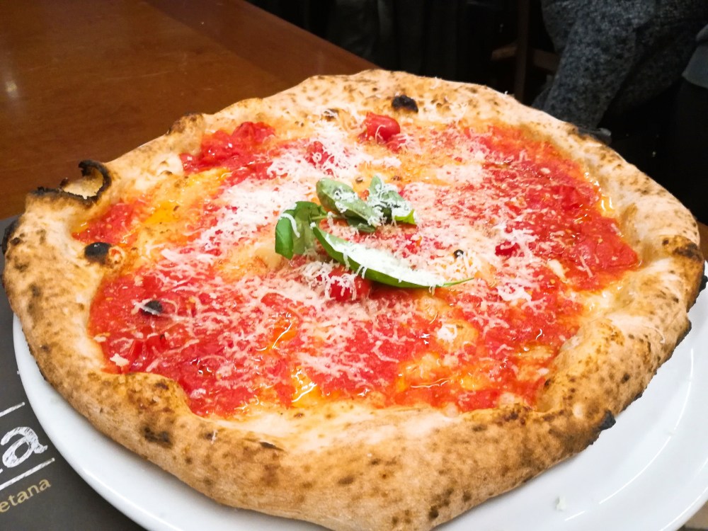 Ecco le pizze: una Napul’E’ con scaglie di pecorino carmasciano, pomodoro San Marzano, basilico e olio extravergine d’oliva salernitano, un tuffo nel passato quando anticamente a Napoli si usava quella spolverata di formaggio per condire la pizza e una quattro formaggi con aggiunta personalizzata di ciliegine di bufala e salsiccia e insaporita da cacioricotta cilentano, mozzarella di bufala, provola affumicata e blue di jersey dolce. Indescrivibile, unica, pazzesca.