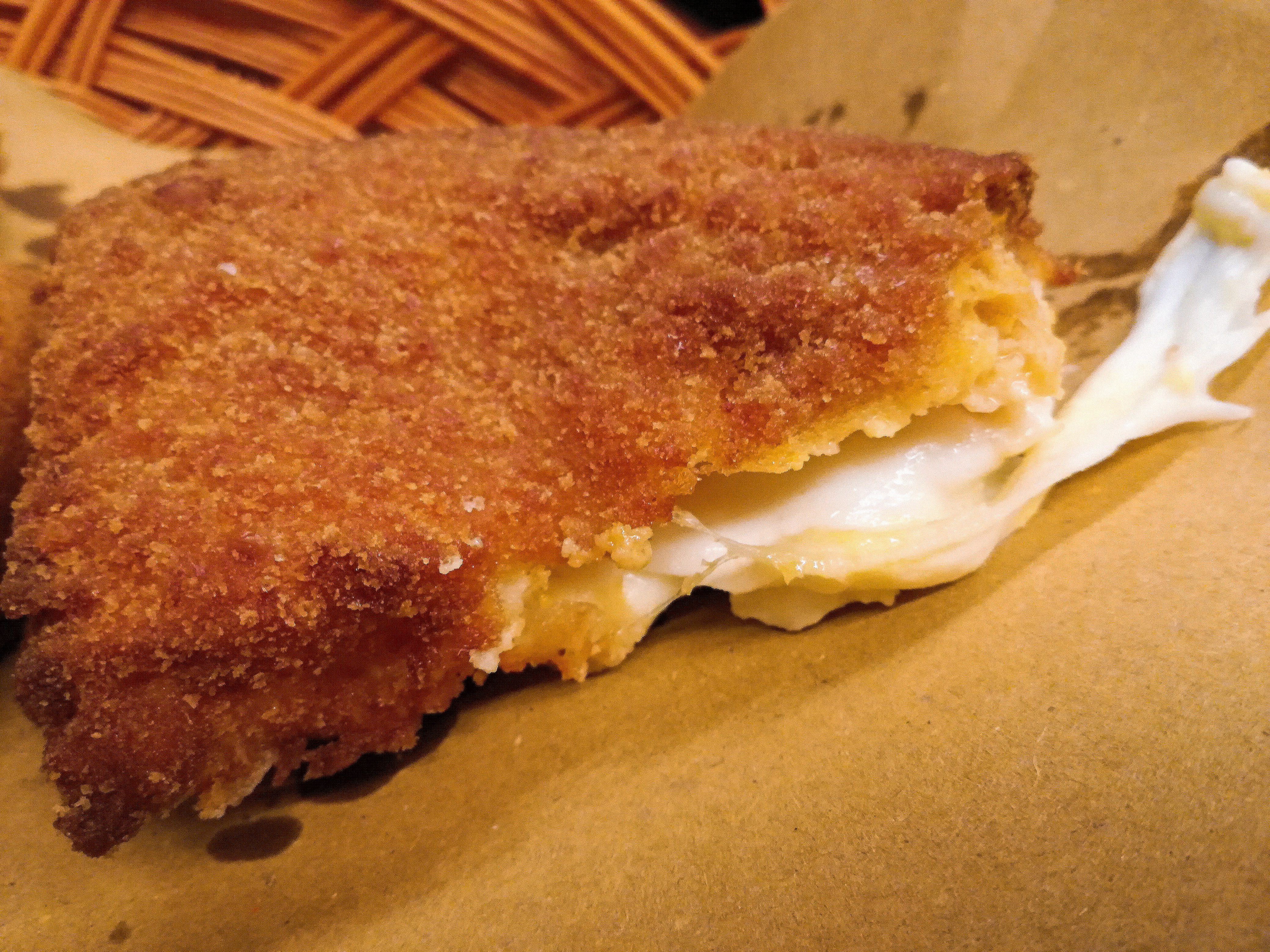 La pizza ha il disco sottile, è scioglievole e leggera, l’impasto contiene farina 0, lievito di birra, sale e acqua. La lievitazione diretta è di 24h a temperatura costante e il cornicione è medio-basso. Finalmente qualcosa di più ricercato e di diverso dal solito canotto. I topping variano dai classici ai sofisticati per gli amanti delle novità. Tutto è selezionato direttamente da Alfonso che preferisce rifornirsi in zona, possibilmente a pochissimi chilometri dalla pizzeria che è ubicata sulla SS18 che porta a Bellizzi, dopo il Centro Commerciale Maximall di Pontecagnano. I latticini ad esempio provengono dal Caseificio Ilka di Carlo Pipolo e altri nuovi prodotti saranno presto introdotti da Alfonso nel suo menù. In assaggio prima delle pizze un crocchè e una mozzarella in carrozza. Spettacolari entrambi, ben eseguiti, croccanti e con un bel ripieno appagante. L’artefice di questi capolavori color oro è Vincenzo Senatore, braccio destro di Alfonso, il re del fritto napoletano, e non solo, ma anche dei dolci artigianali che regalano un fine pasto carico di emozioni.