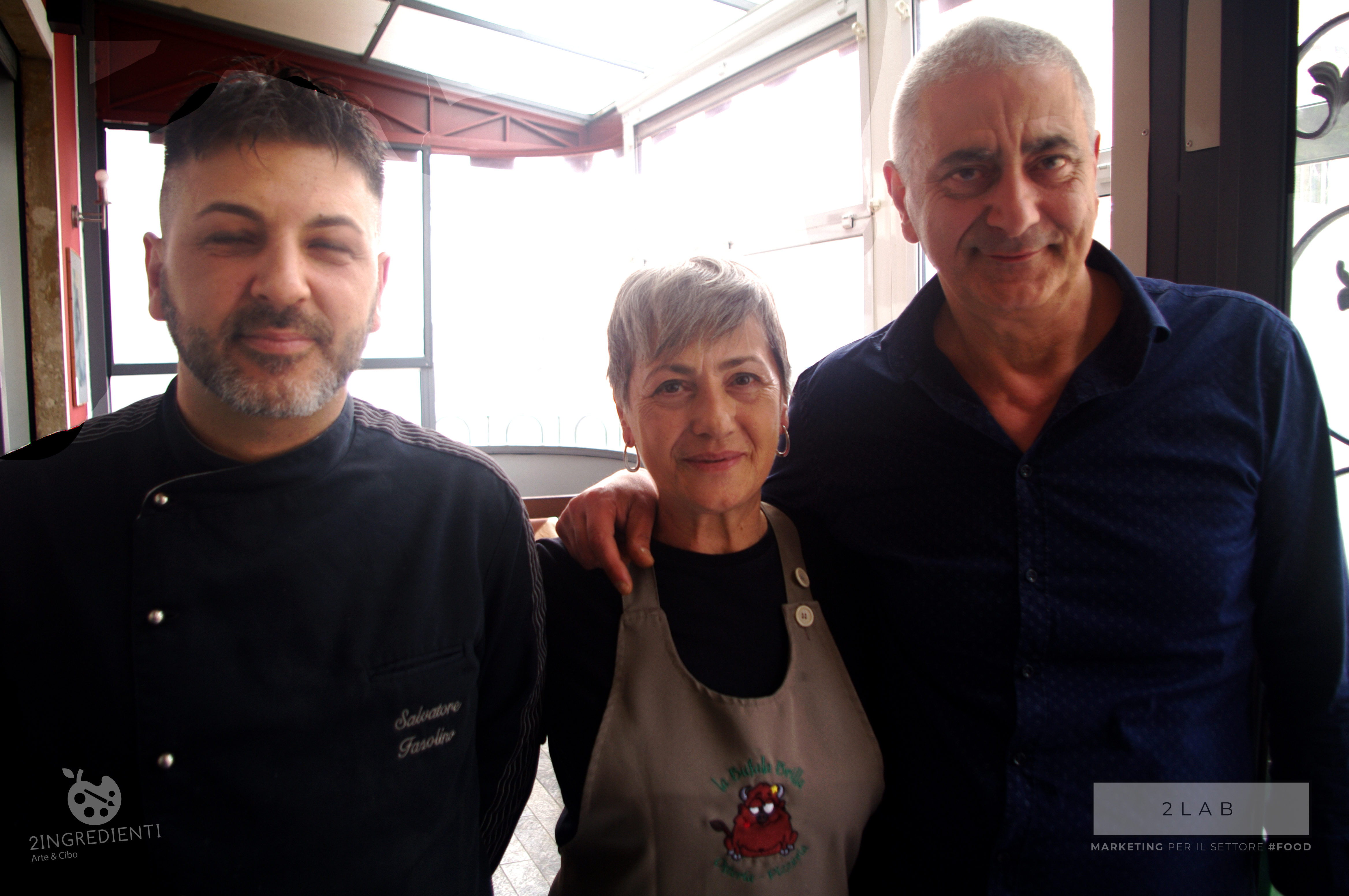 Questa è anche un pò la favola di Carlo Di Falco e Maria Rosaria Landi che assieme allo chef Salvatore Fasolino hanno creato la squadra vincente della Bufala Brilla. L’Osteria-Pizzeria infatti è collocata proprio alle pendici del Monte Tubenna, a San Mango Piemonte, la città della mela annurca che offre molte attrattive turistiche. Il locale vuole coniugare tradizione e innovazione in un’ambiente tranquillo e familiare, in cui la ricerca dei prodotti migliori è all’ordine del giorno per far vivere al commensale un’esperienza gastronomica unica, un viaggio attraverso l’Italia dei sapori. Tra una chiacchiera con l’oste e un ottimo piatto accompagnato da buon bicchiere di vino, si vivono alcune ore in spensieratezza senza lo stress che quotidianamente attanaglia. Carlo è un valido intrattenitore oltre che un esperto conoscitore dei migliori prodotti campani e nazionali. Commerciante in pieno centro a Salerno, Carlo da più di un anno ha rilevato la gestione del ristorante, realizzando il sogno di una vita. Lui è in sala, Salvatore ai fornelli e la moglie Maria Rosaria si occupa della pasticceria handmade. La location è rustica con una luminosa sala interna, accogliente e calda in inverno proprio per la presenza del forno a legna per le pizze. All’esterno una spaziosa veranda è comoda e fresca soprattutto durante il periodo estivo. La cucina è mediterranea, schietta come l’affiatata coppia che riesce ad essere in sintonia in maniera perfetta, sempre cordiale con i propri ospiti buongustai. L’entrée di benvenuto, servito prima dei golosi antipasti, è stato originale e ben presentato, predisponendo piacevolmente il palato all’assaggio delle altre portate selezionate dall’intrigante menù.