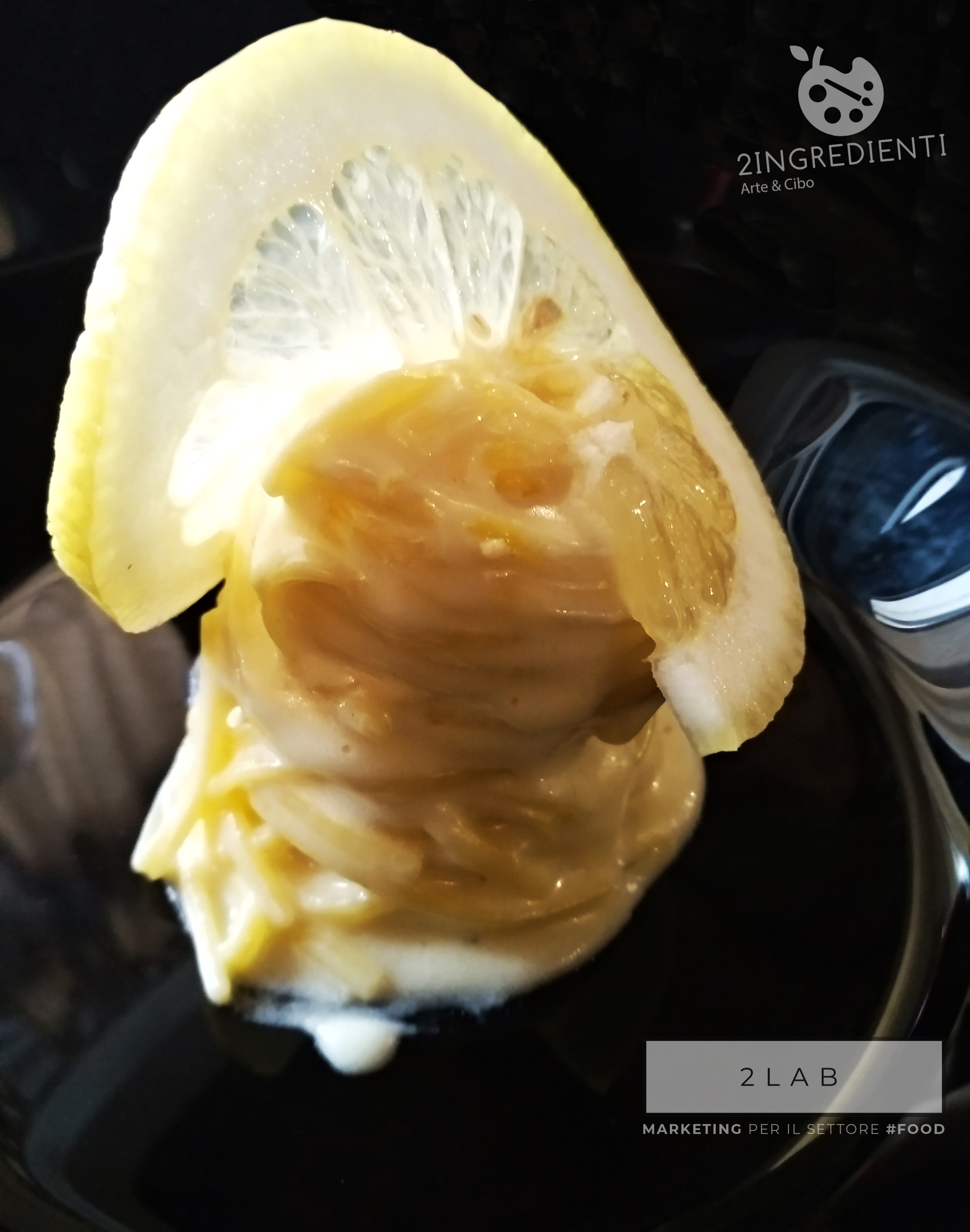 Bufala e limone nello specifico, o meglio un bocconcino di bufala semi-sciolto, inglobato in un limone tagliato a metà e aromatizzato dalle essenze sprigionate dall’agrume con la sua bella crosticina invitante. In abbinamento il Trentapioli di Salvatore Martusciello, uno spumante da Asprinio d’Aversa DOC, con metodo martinotti brut millesimo 2017, ottenuto rigorosamente da vigneti ad alberata, unici nel loro genere, provenienti dal comune di Casapesenna, nell’agro aversano.