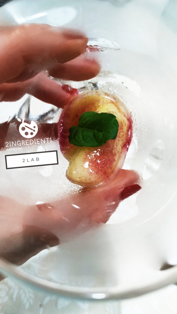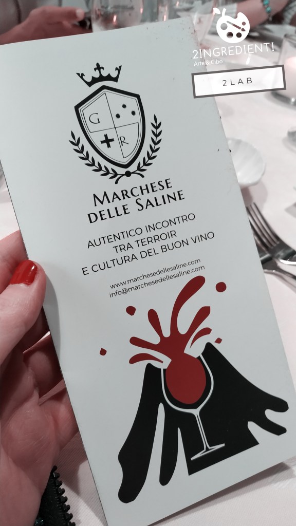 “Ricordo di un carrettino” si è tradotto in un’altra destrutturazione, in questo caso del limone sfusato, ridotto a sorbetto con polpa del limone stesso, succo e buccia e decorazione di menta rotundifolia e glitter di zucchero profumato alla violetta selvatica. Sublime. In abbinamento al menù i vini della cantina Marchese delle Saline: Spumante extra dry Tìade di un giallo paglierino con riflessi verdognoli, al gusto pieno e armonioso con sentori di vaniglia e freschi profumi fruttati; Etna bianco DOP Tìade con presenza di profumi floreali e note di pompelmo, al palato minerale, fresco e delicato.