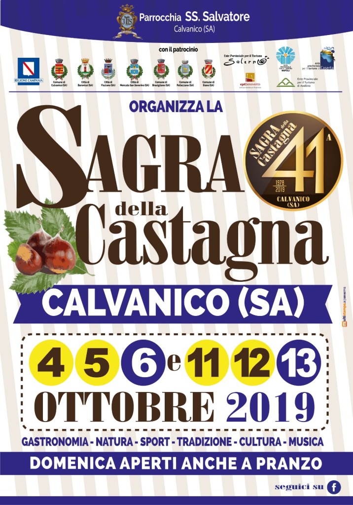Si preannuncia un’edizione straordinaria la 41esima Sagra della Castagna di Calvanico che, dopo il successo riscosso lo scorso anno in occasione del quarantennale, si sdoppia di nuovo in due week end consecutivi, dal venerdì alla domenica, nei giorni 4/5/6 e 11/12/13 ottobre 2019.