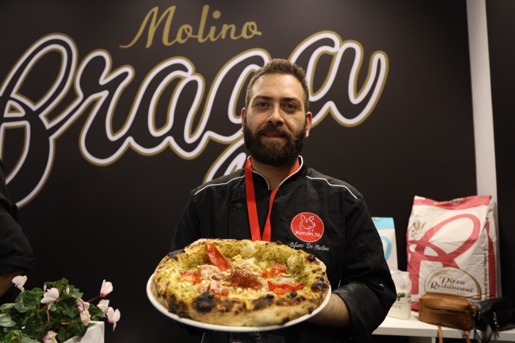 Stefano De Martino, giovane ma già esperto pizzaiolo, sforna una pizza friabile e fragrante, altamente digeribile grazie a un impasto indiretto composto da un bland di farina tipo 0 al 90% e tipo 1 al 10, biga al 90%, poolish al 10%. Grazie all’alta idratazione pari al 70%, De Martino porta in tavola un prodotto dall’ottima struttura che rende facile la masticazione.