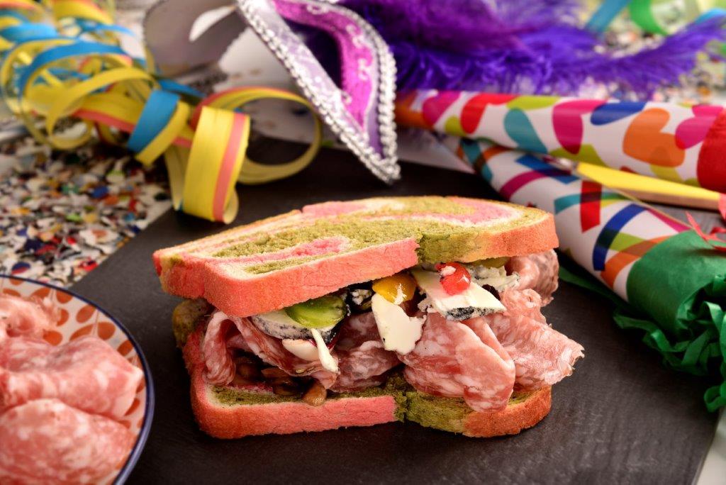 Arriva poi “Colombina”, che nel suo pane a cassetta arcobaleno, racconta della sua origine grazie ai prodotti del suo territorio, dalla Sopressa Veneta, al radicchio, alla formaggella di Treviso, fino alla mostarda con frutti misti.
