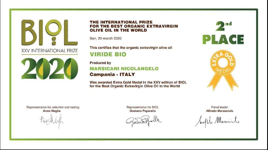 Al 2° posto assoluto si è classificato Viride bio, l’etichetta monocultivar coratina dell’azienda Marsicani che opera in provincia di Salerno nell’area del Parco Nazionale del Cilento. Una gran bella soddisfazione che arriva in un momento difficile per tutti i produttori olivicoli e che premia una coratina lavorata in Campania in una competizione storica che nasce proprio in Puglia dove Nicolangelo Marsicani collabora con numerose aziende e dove, come lui stesso ha avuto modo di dire in molteplici occasioni, nel corso degli anni ha avuto la possibilità di approfondire e coltivare il suo amore per questa cultivar straordinaria che regala oli di grande personalità. Sempre Viride bio si è aggiudicato anche il premio Biol Territorio Campania 2020 come miglior extravergine biologico della Campania.
