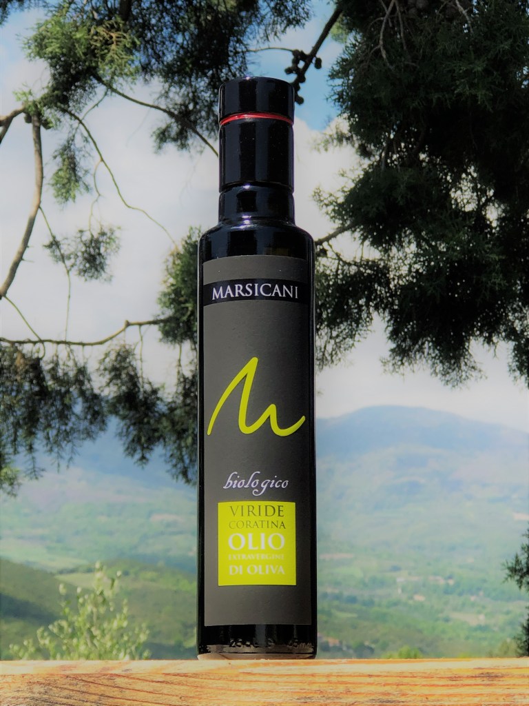 Viride bio monocultivar coratina è un’etichetta di punta nella produzione Marsicani e negli anni ha ricevuto molti importanti riconoscimenti in ambito nazionale ed internazionale. Fatte salve le normali piccole variazioni dovute all’andamento che caratterizza ogni annata olivicola, Viride bio ha un profilo sensoriale ben delineato e riconoscibile: un fruttato medio pieno che insieme alla sensazione di mandorla verde, fresca e avvolgente, accoglie sentori di erba falciata e accompagna una struttura gustativa di intensità media, coerente col fruttato, data da un amaro caratterizzato da delicate note di erba, lattuga e mandorla dolce che affilandosi rapidamente su sensazioni di foglia di ulivo lascia entrare un piccante irruente il cui picco rapidamente affievolisce consentendo un ritorno piacevole delle note amare aromatiche di erba e foglia. La persistenza è lunga e il palato pulito, nel complesso si rivela un extravergine armonico, complesso ed elegante.