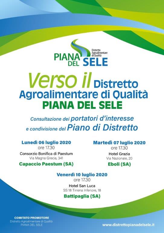 Nei prossimi giorni ripartiranno le attività di consultazione dei portatori di interesse del Distretto Agroalimentare di Qualità della Piana del Sele, identificato con Decreto Dirigenziale Giunta Regione Campania nr. 31 del 07/02/2020.