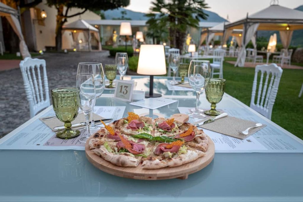Nell’incantevole cornice di Villa Soglia, dall’incontro di nomi risonanti della gastronomia nazionale, nasce la serata evento ‘Gli Dèi della Pizza’. L’11 agosto, dalle ore 20.30, nel giardino della residenza storica dell’ultimo principe di Salerno, a Castel San Giorgio, i pizza chef Giuseppe Maglione (Daniele Gourmet, Avellino), Alessandro Negrini (Vincitore The Best Professional Pizza Advisor in the World), Gino Fedele (La braceria dei Giusti, Novara) e il re della griglia, Luciano Bifulco (Braceria Bifulco, Ottaviano) si esibiranno in una cena degustazione a base di Pizza e Champagne. Un’esperienza emozionale che coniuga il lusso delle bollicine ai sapori popolari della tonda più amata al mondo, ma lo fa in una veste atipica e singolare. I quattro artisti del gusto sovvertono le regole del gioco: faranno incontrare due grandi tradizioni apparentemente agli antipodi, quella italiana della pizza e quella francese dello Champagne e lo faranno con la precisa volontà di esaltare lo stile dell’alta cucina. Non una normale pizza gourmet, ma una pizza degustazione che vede trionfare gli abbinamenti ricercati e una tecnica culinaria innovativa e contemporanea. Un confronto effervescente per cultori del food che potranno degustare un menù stellare nella elegante atmosfera di Villa Soglia.