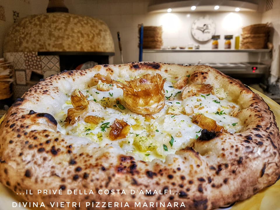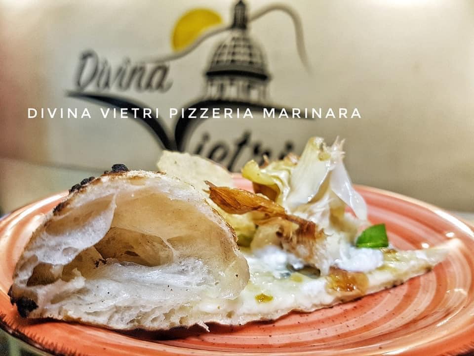 Tutto è partito da una “Social Call” che qualche giorno fa fu pubblicata sul profilo Facebook di Elena Secrii, titolare assieme a Pietro D’Amico della pizzeria Divina Vietri a Vietri sul Mare in Costiera Amalfitana. “Aiutateci a scegliere il nome di questa pizza che entrerà nel nuovo menù. Spuma di patate insaporita con colatura di alici, Crostini di pane con prezzemolo, aglio e olio evo, Carciofi bianchi fritti, Trito di prezzemolo fresco, Fior di latte, olio evo. Come la chiamiamo questa deliziosa creatura?“. Così appunto recitava l’appello di Elena rivolto ai suoi numerosi follower.
