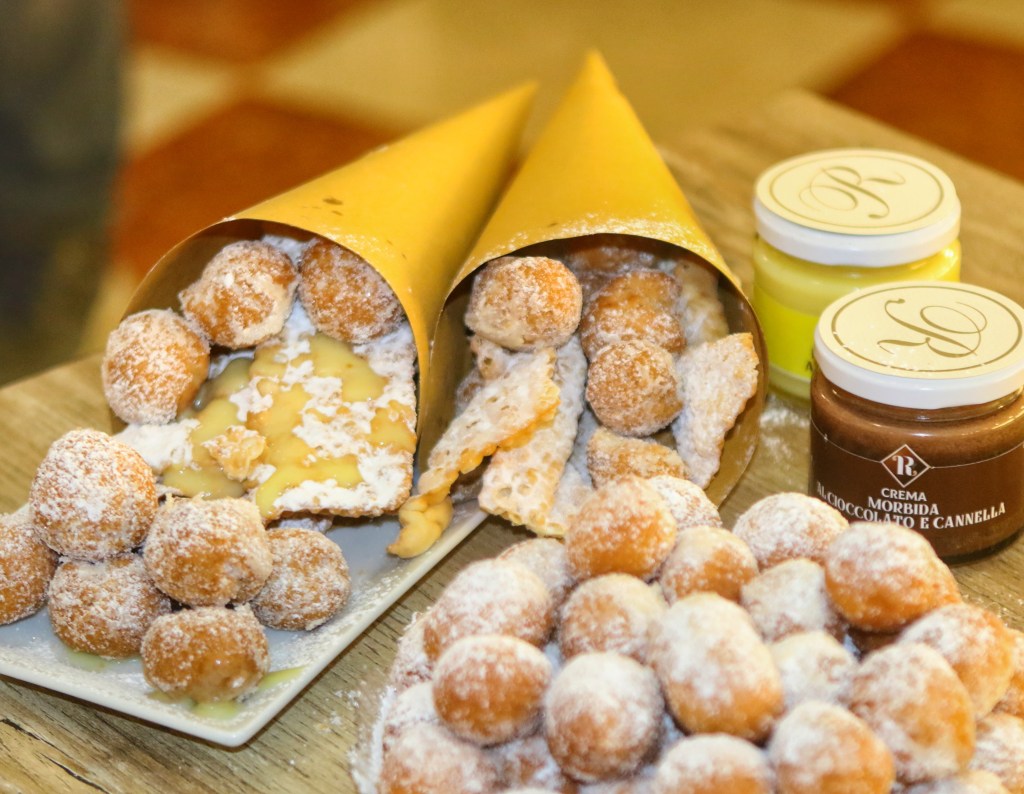 Chiacchiere, castagnole, sfinci e creme spalmabili. Tutto in versione street-food. A Carnevale il Gran Caffè Romano di Solofra ha deciso di esagerare con fritti, calorie e grassi ammaliando i propri clienti con una proposta golosa e contemporanea. Sempre nel solco di una lunga tradizione dolciaria i fratelli Lello e Gianfranco hanno studiato una formula on the road che sta riscuotendo grande successo tra giovani e meno giovani. Si tratta del cuoppo di Carnevale. Un classico cono di carta assorbente che accoglie al suo interno i dolci tipici di questo periodo: chiacchiere, castagnole e sfinci siciliane. Simpatico e capiente può essere gustato comodamente seduti al tavolo secondo i parametri delle misure anti-covid, oppure richiedere la formula take-away da mangiare a casa, o in ufficio. Ma non è finita qui. Per arricchire il gusto dei vostri fritti potrete scegliere tra i diversi topping di casa Romano: pistacchio, gianduia, cioccolato bianco, sanguinaccio, o crema al limone. Ad ogni cuoppo la sua spalmabile, così i sapori si amalgamano garantendo gusto e praticità.