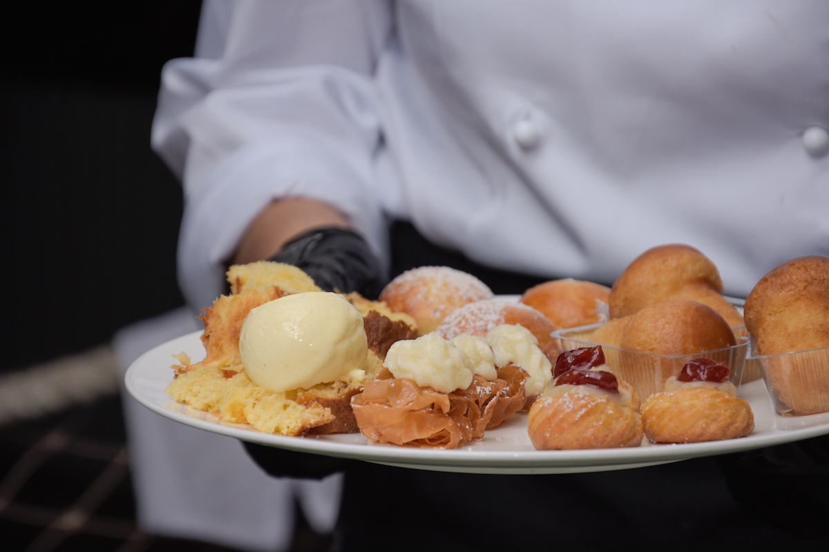 “Abbiamo scelto per un festival che trasmette i valori della Campania di presentare diversi dolci della nostra tradizione: abbiamo preparato dei babá, delle zeppole fritte di San Giuseppe sia in versione frolla liscia e frolla riccia scomposta, panettone alle albicocche con gelato alla vaniglia. Tutto basato sulla piccola pasticceria napoletana”, ha dichiarato Alessandro Slama.