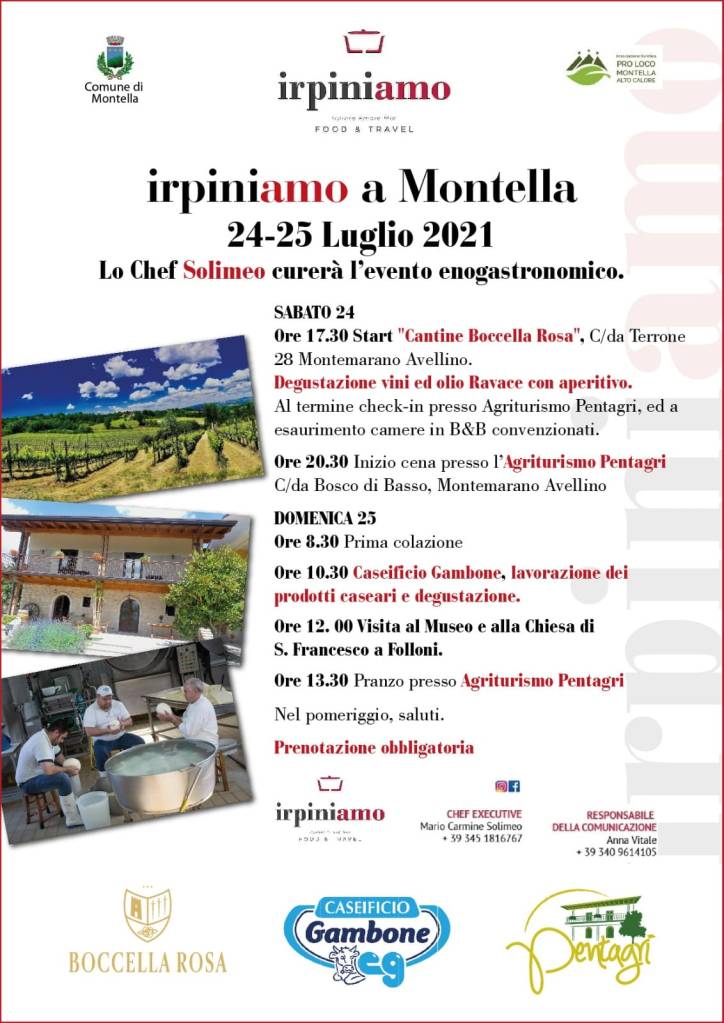 Irpiniamo è un progetto itinerante il cui obiettivo è la valorizzazione e promozione del patrimonio artistico ed enogastronomico irpino. Artefice e ideatore dell’iniziativa è lo chef Solimeo che in sinergia con gli enti pubblici ed i soggetti privati ha dato vita a dei percorsi che vogliono regalare esperienze uniche a chi le intraprenderà, arrivando dritto al cuore della gente.