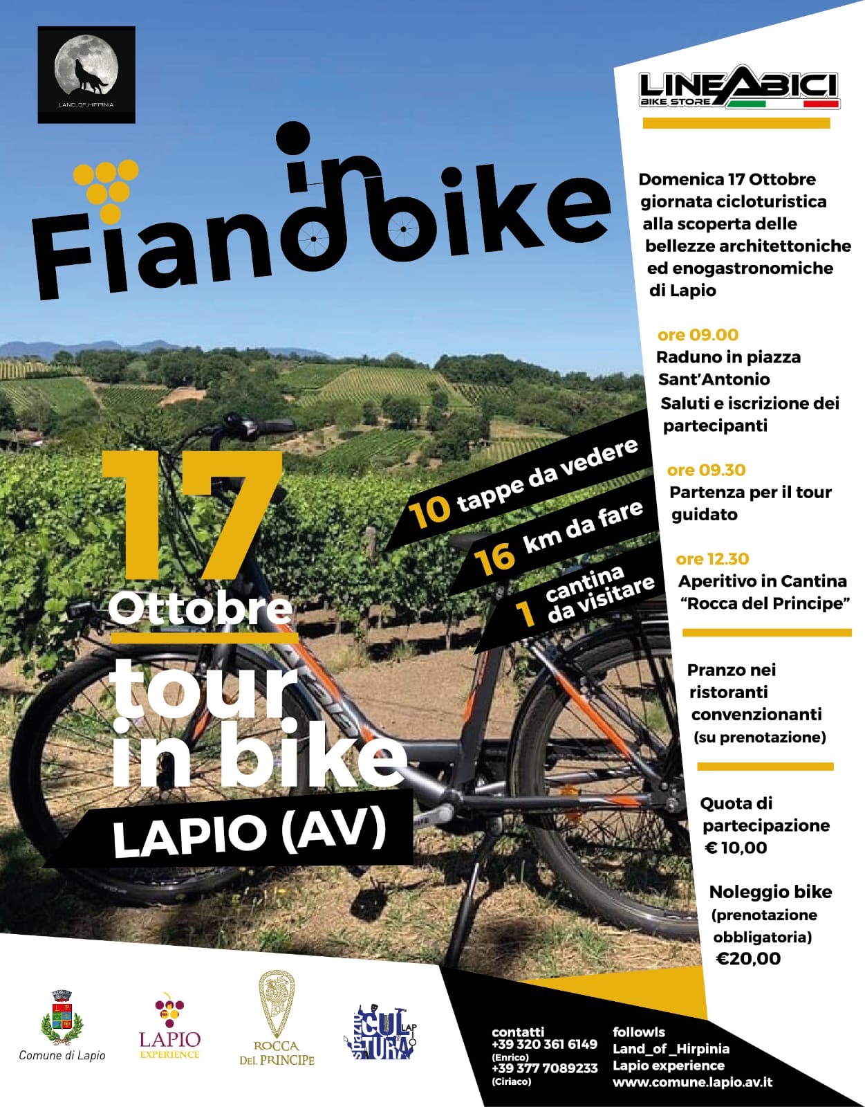 Un’insolita full immersion nel cuore dell’Irpinia, per tutti gli amanti della bici e del buon vino. Sarà Lapio, antico borgo in provincia di Avellino, a dare il via, domenica 17 ottobre, a “Fiano in Bike”, evento che punta a far conoscere al meglio le tante bellezze e le specialità della zona.