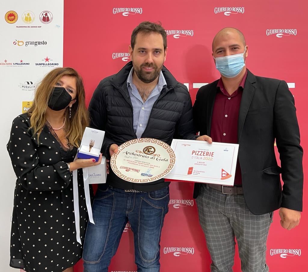 Il premio speciale “Miglior Servizio di Sala” assegnatodal Gambero Rosso nell’ambito della presentazione Guida Pizzerie d’Italia 2022 alla Mostra d’Oltremare di Napoli, va alla pizzeria siciliana “Archestrato di Gela” di Palermo. Ritira il premio lo chef Pierangelo Chifari consegnato da Maria Vittoria Casolaro, responsabile divisione eventi della Casolaro Hotellerie, azienda specializzata nelle forniture alberghiere, da cinque generazioni.