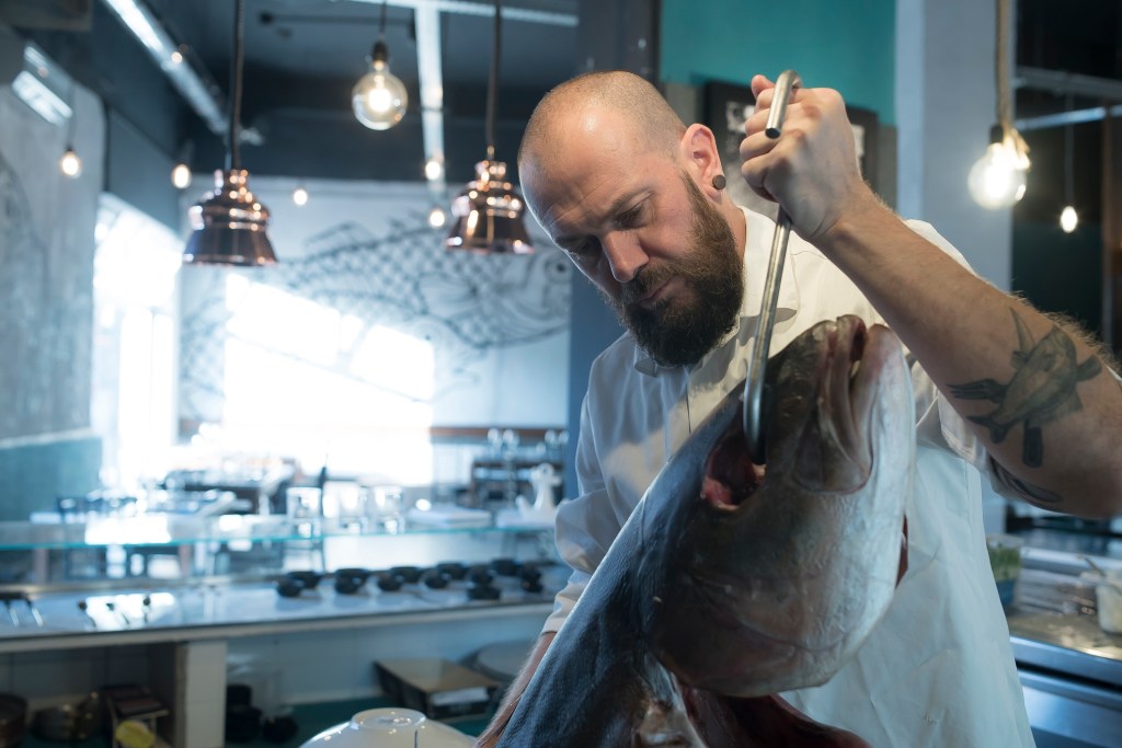 «Alla fine degli anni ’90 a Londra usavamo la sorbite per estrarre l’umidità e prolungare la conserva. Oggi lo si fa con i Dry Ager, attrezzature che, con il controllo della temperatura, umidità e ventilazione, creano il giusto ambiente per la conservazione/frollatura del pesce», spiega lo chef che non ha ancora compiuto 50 anni ma che fa questo mestiere da 30.