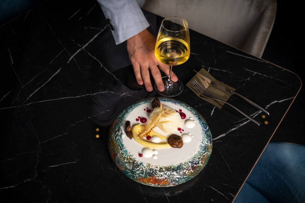 I dolci portano la firma del resident pastry chef Gennaro Sarnelli, che presenta i suoi roccocò e sorbetto al mandarino e il pandoro artigianale. Immancabili bollicine per festeggiare il passaggio al nuovo anno.