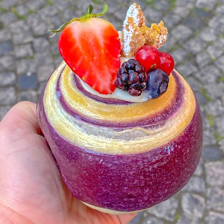 “È il prodotto che mi sta più a cuore perché dedicato alla mia principessa Giorgia e al suo amore per il colore viola. All’interno di un lievitato al primo morso troverete una cheescake, stavolta calda”, così “Zio Rocco” nel raccontare la sua ultima invenzione, disponibili nei “Lab Store” a Napoli in vico Polveriera 27 e su Uber Eats, e a Pomigliano d’Arco in via Roma 161 e su Alfonsino.