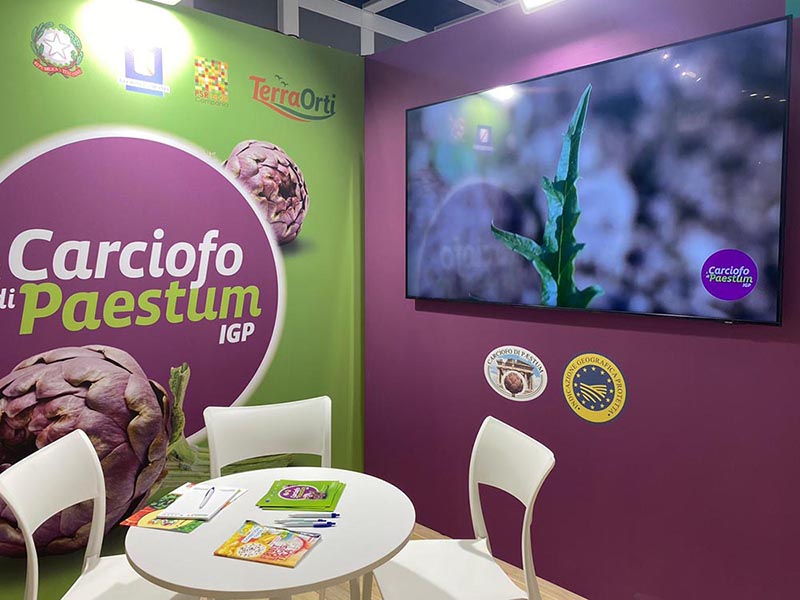 Nell’ambito della campagna di valorizzazione del Carciofo di Paestum IGP, promossa da Terra Orti e finanziata dalla misura 3 Tipologia di intervento 3.2.1 del P.S.R. Campania 2014 – 2020, si è svolta la partecipazione a FRUIT LOGISTICA, la più importante fiera mondiale del settore ortofrutticolo in programma a Berlino dal 5 al 7 Aprile 2022.