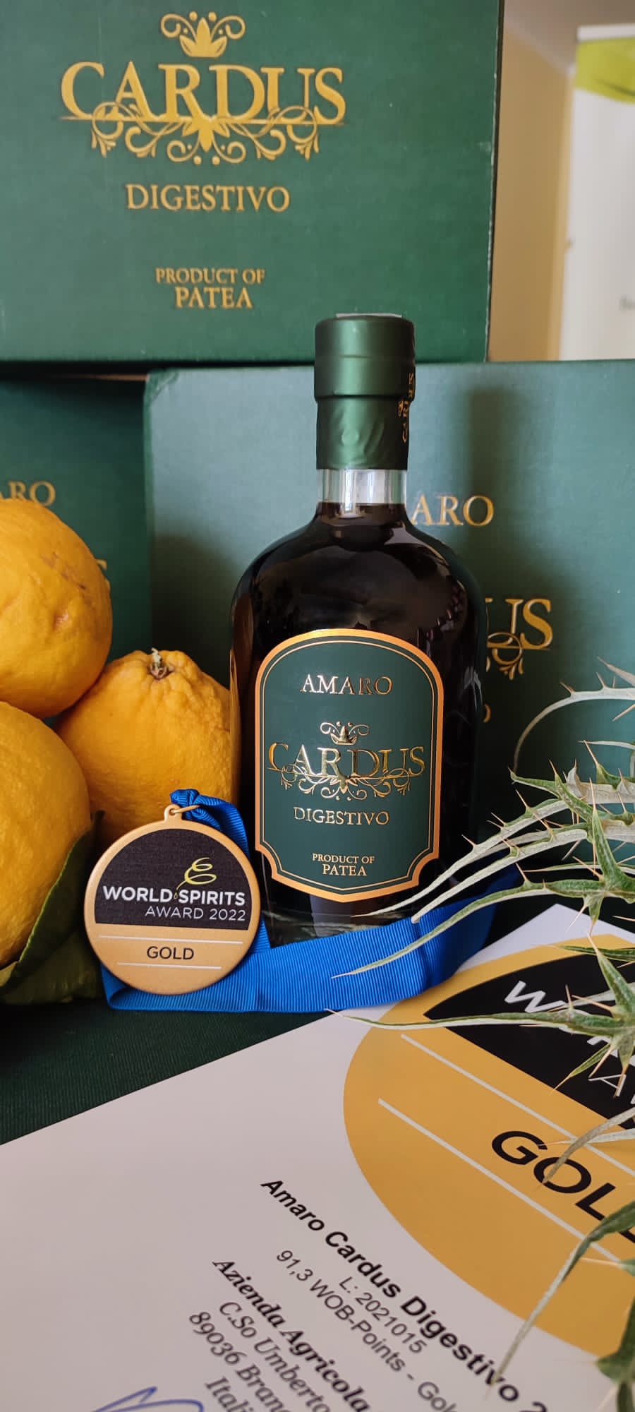 Il bergamotto di Reggio Calabria e la Calabria delle eccellenze tornano a splendere nelle competizioni internazionali. L’amaro “Cardus” dell’azienda agricola Patea di Brancaleone (RC), vince tra i migliori amari al mondo la medaglia d’oro della World Spirits Award (WSA 2022). “Cardus” nasce dall’infusione equilibrata per ben quaranta giorni di tre prodotti a km zero, dall’alto potere antiossidante e dalla spiccata valenza salutistica: il Cardo selvatico, il Mirtillo e le pregiate bucce di Bergamotto di Reggio Calabria. Un trittico di benessere e di bontà che rendono particolari il sapore e la composizione dell’amaro “Cardus” con i suoi 28% di gradazione alcoolica. E’ un amaro molto originale, dal gusto eccezionale che ricorda i digestivi di un tempo quando il sapore dello zucchero e dell’alcool non predominava, a detta dei tantissimi e crescenti estimatori e dei cultori del settore. Infatti si propone di assaggiarlo freddo e non necessariamente ghiacciato. Un ottimo digestivo ma anche un buon ingrediente per aperitivi e cocktail e si presta anche ad essere abbinato ai tipici dolci alle mandorle, al gelato e al famoso Tartufo di Pizzo. Secondo i giudici del premio internazionale WSA di matrice austriaca, è il profumo di bergamotto che inebria subito il fortunato assaggiatore insieme ai profumi di erbe, di agrumi, di resine. Un profumo che si armonizza al sapore unico con note di cardo selvatico, bergamotto e agrumi, mirtillo e al retrogusto di gradevole amaro e fresco, con buon corpo e densità.